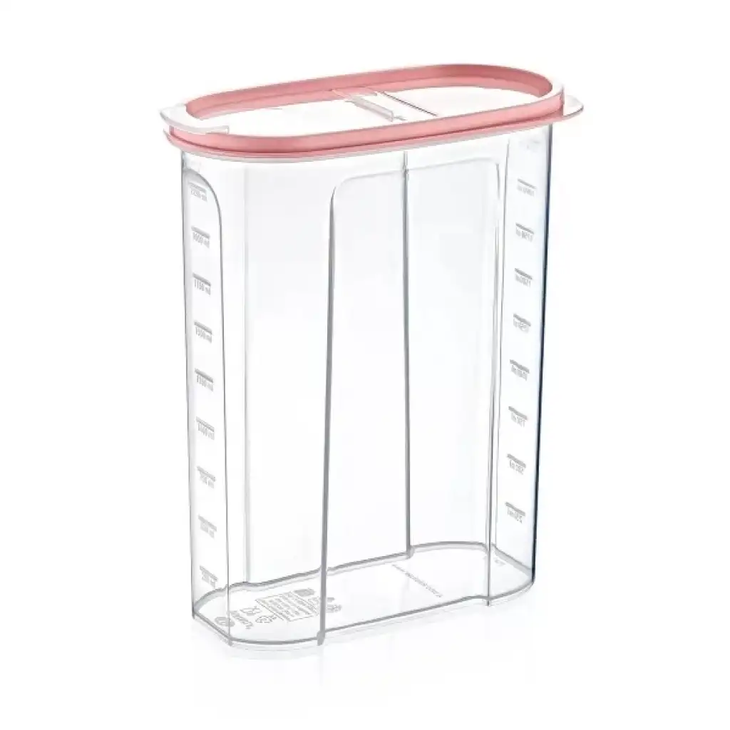 2.4 LT ERZAK SAKLAMA KABIÜrün Özellikleri2.4 Lt Erzak Saklama Kabı, mutfakta düzeni sağlamak ve kuru gıdaları güvenli şekilde muhafaza etmek için tasarlanmış pratik bir depolama çözümüdür. 2.4 litre geniş hacmi sayesinde bakliyat, makarna, pirinç, un, şeker, kahvaltılık gevrek ve benzeri kuru gıdaların saklanmasına uygundur. Şeffaf gövde tasarımı ile içerisindeki miktarı kolayca kontrol etmenizi sağlar. Ölçü çizgileri bulunan yüzeyi sayesinde doluluk oranı rahatlıkla takip edilebilir. Kapaklı yapısı sayesinde ürünlerin dış etkenlerle temasını azaltmaya yardımcı olur ve dolap içinde düzenli bir görünüm sunar. Ergonomik ve yer tasarrufu sağlayan formu ile hem tezgâh üzerinde hem de mutfak dolaplarında kullanıma uygundur. Günlük kullanım için ideal olan bu erzak saklama kabı, mutfakta düzen ve pratiklik arayanlar için işlevsel bir tercihtir.Ürün Teknik Özellikleri Özellik Açıklama Ürün Adı 2.4 Lt Erzak Saklama Kabı Hacim 2.4 Litre Tasarım Kapaklı, şeffaf gövde Kullanım Alanı Kuru gıda ve bakliyat saklama Paket İçeriği1 adet 2.4 Lt Erzak Saklama Kabı