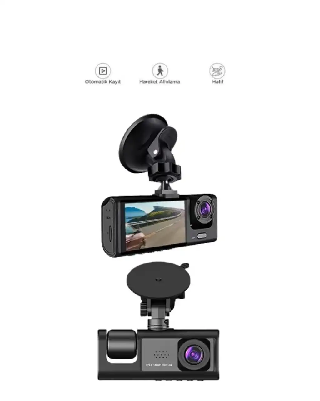Araç içi güvenliğinizi ciddiye alanlar için geliştirilen bu üç kameralı sistem, hem ön trafiği, hem iç kabini, hem de arka alanı aynı anda kayda alarak sizi her yönden koruma altına alır. 1080p ön kamera, 720p iç ve arka kameralar ile desteklenerek her ortamda net görüntüler sunar. 170° geniş görüş açısı ve gece görüş teknolojisi sayesinde karanlıkta bile güvenle sürüş yapabilirsiniz. 2.0 inç LCD ekran üzerinden tüm sistem yönetimini yapabilir, kayıtlara ulaşabilirsiniz. Dahili hareket sensörü ile herhangi bir aktivite tespit edildiğinde kayıt otomatik olarak başlar. G-Sensör özelliği sayesinde kaza anında ilgili görüntüler silinmeden saklanır. Tüm bu teknolojiler, su ve toz geçirmez sağlam gövde içinde birleşerek size uzun ömürlü bir güvenlik çözümü sunar.