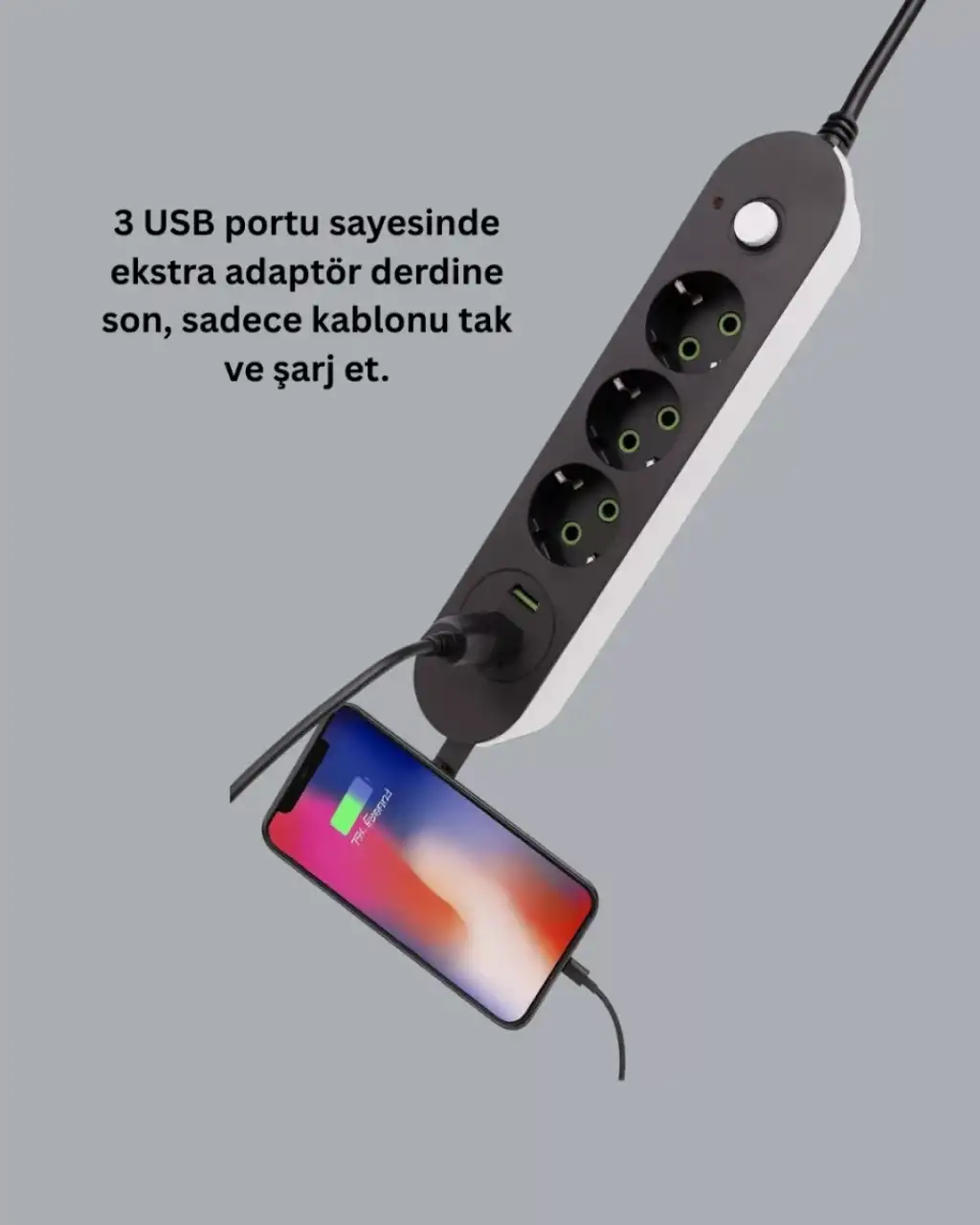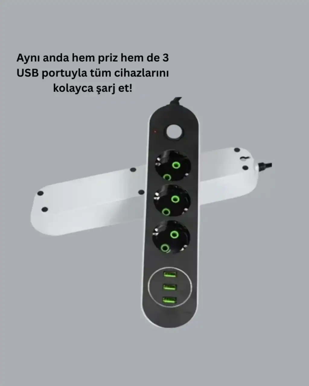 Güvenlik anahtarlı üçlü priz, üç USB portu ve üç priz çıkışıyla aynı anda birden fazla cihazınızı kolayca kullanabilmenizi sağlar. USB portları cihazları otomatik tanıyarak hızlı şarj desteği sunar. Anahtar özelliği sayesinde elektrik akımını dilediğiniz zaman kesebilirsiniz. Akım koruma sistemi, cihazlarınızı voltaj dalgalanmalarından koruyarak güvenliği artırır. 2 metre uzunluğundaki kablo ile geniş bir kullanım alanı sağlar. Kompakt ve şık tasarımıyla ev veya ofis dekorunuza uyum gösterir. Dayanıklı yapısı sayesinde uzun ömürlü kullanım sunar.