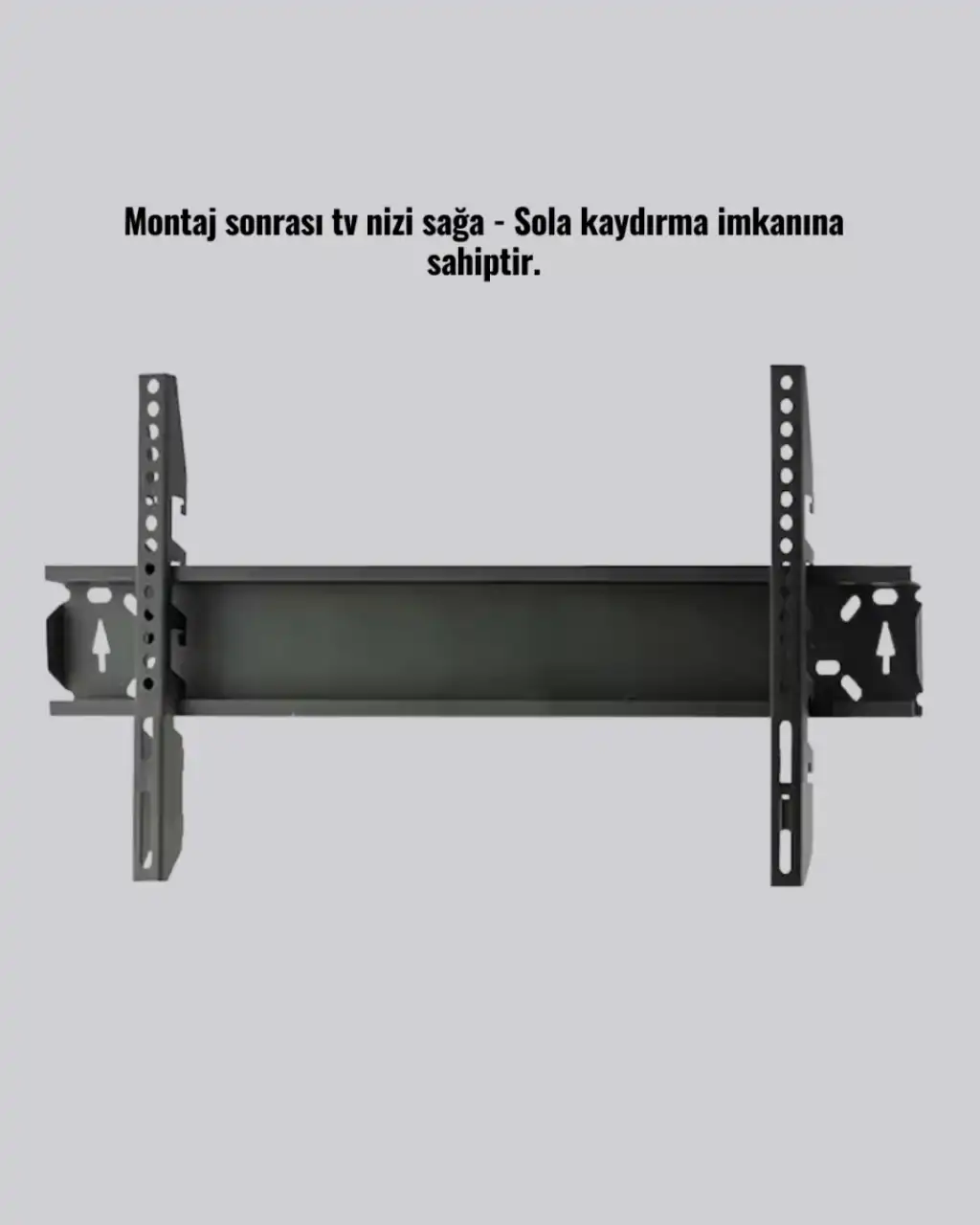 LCD–LED–Plasma TV Askı Aparatı, 32–65 inç tüm televizyonlarla uyumlu bir montaj sistemidir ve 75 kg’a kadar taşıma kapasitesi sayesinde büyük ekranlı TV’ler için de güvenli kullanım sağlar. Hem ev tipi kullanımda hem profesyonel alanlarda tercih edilen dayanıklı bir çözümdür.Ürün, ekstra güçlendirilmiş çelik gövde ile üretilmiştir. Türkiye'de 1. sınıf malzemelerle imal edilen parçalar, üstün dayanıklılık ve uzun ömür sunar. Ağır televizyonlarda bile eğilme, bükülme veya titreşim oluşmaz.Montaj sonrası TV’yi sağa–sola kaydırabilme imkânı, ekranın duvar üzerinde tam merkezde hizalanmasını kolaylaştırır. 3 kademeli yükseklik ayarı, ekranı istediğiniz göz hizasına taşımanıza olanak tanır.Ürünün yüzeyi anti-statik toz boya sistemi ile kaplanmıştır. Bu kaplama çizilmelere, paslanmaya ve dış etkenlere karşı maksimum dayanıklılık sağlar. Böylece ürün uzun yıllar boyunca ilk günkü görünümünü korur.Kurulum, kutudan çıkan kurulum kılavuzu sayesinde son derece basittir. Vida ve dübel setinin dahil olması montajı daha da kolay hale getirir.Salonlar, ofisler, mağazalar, restoranlar, oteller ve konferans alanlarında kullanılabilecek çok yönlü bir üründür.32–64 inç TV’ler için hem güçlü hem güvenli hem de uzun ömürlü bir askı aparatı arayan tüm kullanıcılar için mükemmel bir tercihtir.