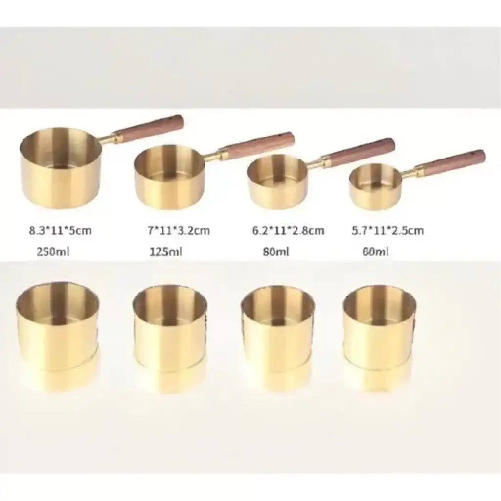 4'LÜ AHŞAP SAPLI ÖLÇÜ KAŞIĞIÜrün ÖzellikleriBu 4'lü ahşap saplı ölçü kaşığı seti, mutfakta ölçü almak için ideal bir çözümdür. Metal kısmı şık altın rengindedir, ahşap sapları ise ergonomik olup rahat bir kullanım sağlar. Farklı boyutlarda 4 ölçü kaşığından oluşan bu set, her türlü yemek tarifinde doğru ölçüleri almanıza yardımcı olur. Estetik tasarımı, mutfakta şıklık yaratır. Her bir kaşık, dayanıklı malzemelerle üretilmiştir ve uzun süreli kullanım için uygundur.Paket İçeriği4 Adet Ahşap Saplı Ölçü Kaşığı
