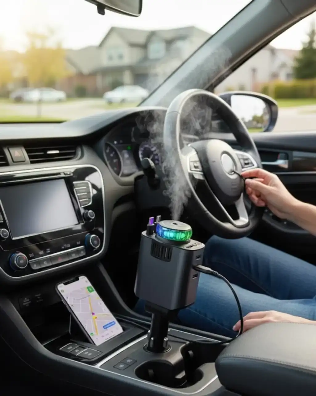 Çok Amaçlı Araç Şarj Cihazı Nemlendirici Koku ve Ambiyans Işığı, araç içinde hem teknolojik hem de konfor odaklı bir çözüm arayanlar için tasarlanmıştır. Şarj ihtiyacını karşılarken aynı zamanda hava kalitesini artırır.Nemlendirici ve aroma fonksiyonları birlikte çalışarak araç içinde dengeli ve ferah bir ortam oluşturur. Yıldız ışık efekti estetik bir atmosfer sunar.Kolay kullanımı, şık tasarımı ve çok yönlü yapısı ile günlük araç kullanımını daha keyifli hale getirir.