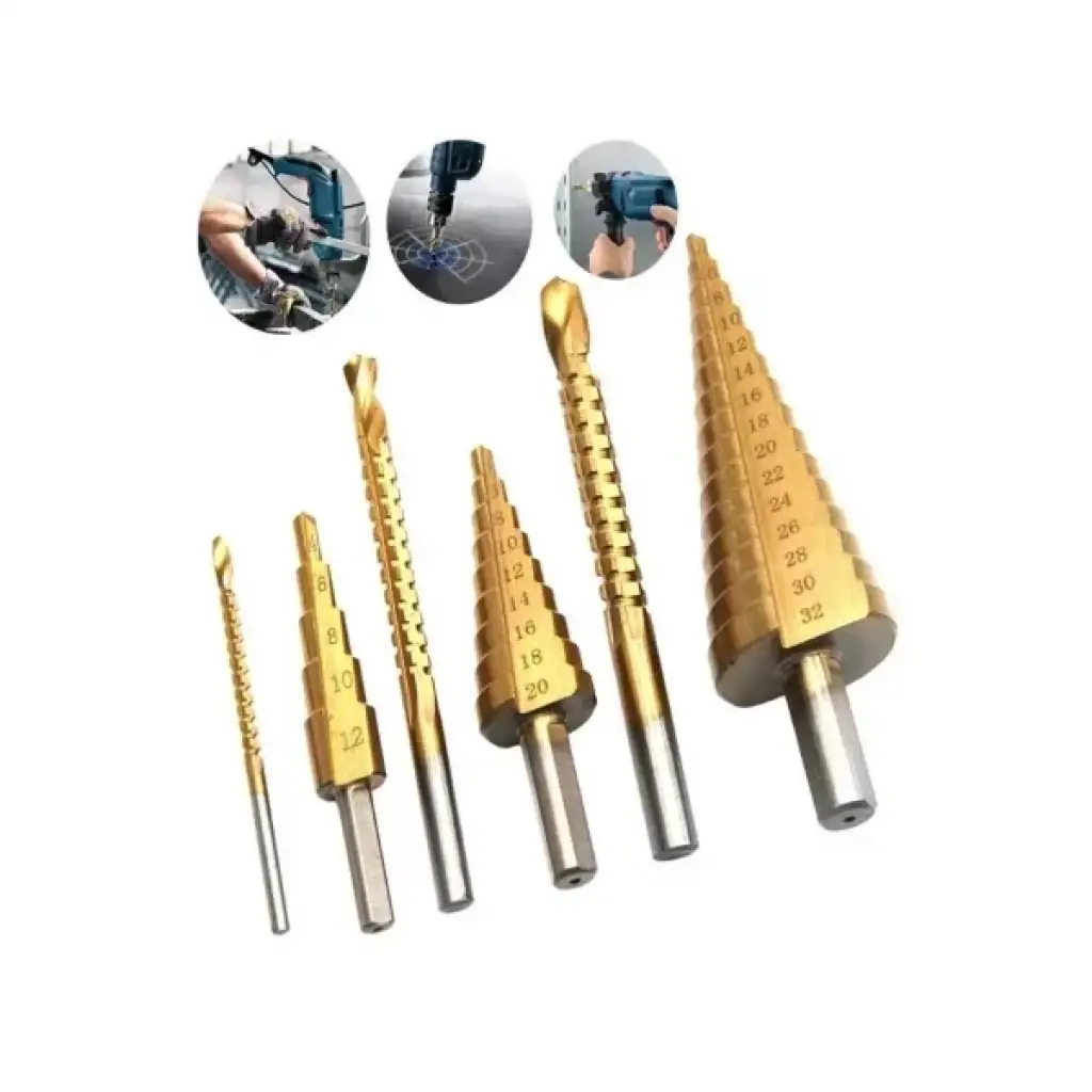 6 PARÇA KADEMELİ MATKAP UCU SETİÜrün ÖzellikleriFarklı çaplarda delikler açmak ve malzeme işlemek için tasarlanmış bu kademeli matkap ve testere uçları seti, çok yönlü kullanım sunar. Kademeli tasarımı sayesinde tek bir uç ile farklı çaplarda delikler açılabilir. Aşınmaya ve ısıya dayanıklı titanyum kaplaması sayesinde uzun ömürlüdür ve daha az sürtünme ile yüksek performans sağlar. Keskin diş yapısına sahip testere uçları, sert malzemelerde bile hızlı ve temiz kesim yapmayı mümkün kılar. Metal, plastik, ahşap, alüminyum ve sac gibi birçok malzemede kullanılabilir. Altıgen şaft yapısı sayesinde matkap uçları sıkıca tutularak kayma önlenir ve şarjlı ya da kablolu matkaplarla uyumlu çalışır. Sac ve metal işleme, ahşap işçiliği, elektrik tesisat işleri, PVC ve plastik delme uygulamalarında mükemmel bir çözümdür.Paket İçeriği1 Adet 6 Parça Kademeli Matkap Ucu Seti