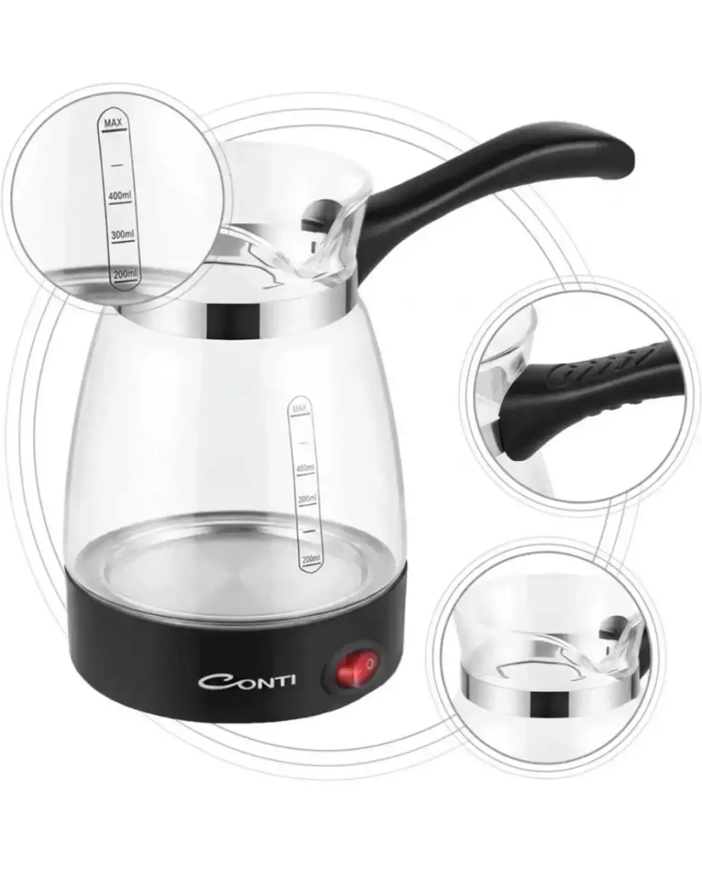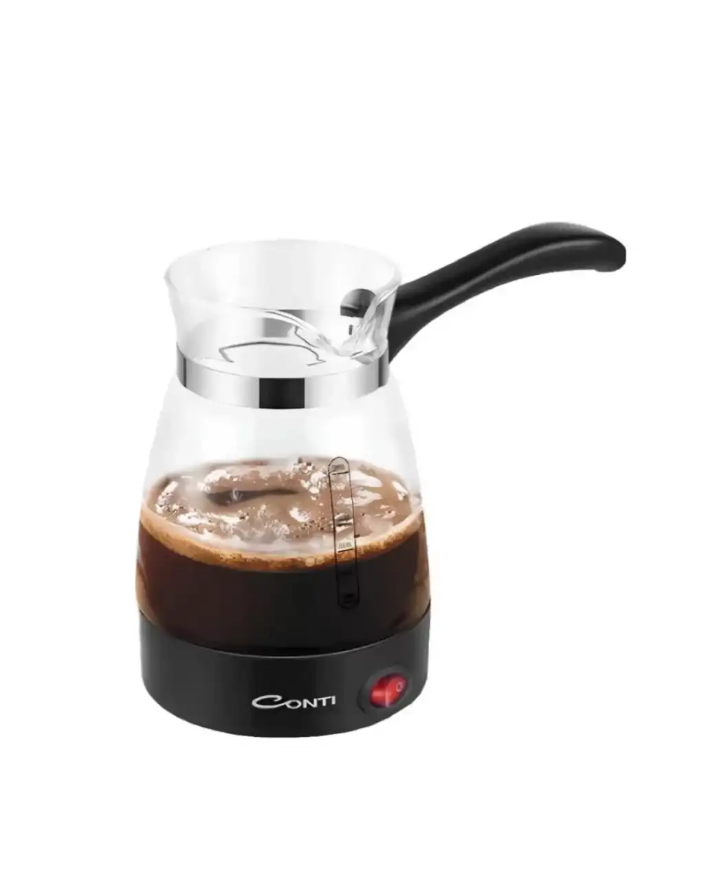 Cam kahve makinesi, geleneksel Türk kahvesi hazırlama yöntemini modern elektrikli sistem ile birleştiren kullanışlı bir mutfak cihazıdır. Elektrikli çalışma sistemi sayesinde kahve hazırlamak oldukça kolay ve hızlı hale gelir. Ocak kullanmaya gerek kalmadan kısa sürede kahve hazırlamak mümkündür.650W gücünde çalışan bu kahve makinesi, kahveyi hızlı şekilde ısıtarak köpüklü Türk kahvesi hazırlamanıza yardımcı olur. Cam cezve tasarımı sayesinde kahve hazırlanırken oluşan köpük ve kaynama süreci rahatlıkla izlenebilir.0.5 litre kapasite sayesinde aynı anda 5 fincana kadar kahve hazırlamak mümkündür. Bu özellik özellikle misafir ağırlarken büyük kolaylık sağlar.Cam malzeme yapısı hem estetik hem de hijyenik bir kullanım sunar. Kahve hazırlama sürecini izlemek kullanıcılar için keyifli bir deneyim oluşturur. Ayrıca temizliği oldukça kolaydır.Ergonomik sap tasarımı sayesinde cezveyi rahat şekilde kavrayabilir ve kahveyi kolayca fincanlara dökebilirsiniz. Isıya dayanıklı sap yapısı güvenli kullanım sağlar.Elektrikli cam kahve makinesi, kahve severler için pratik bir kullanım sunar. Sabah kahvesi, misafir kahvesi veya günlük kahve keyfi için ideal bir mutfak yardımcısıdır.