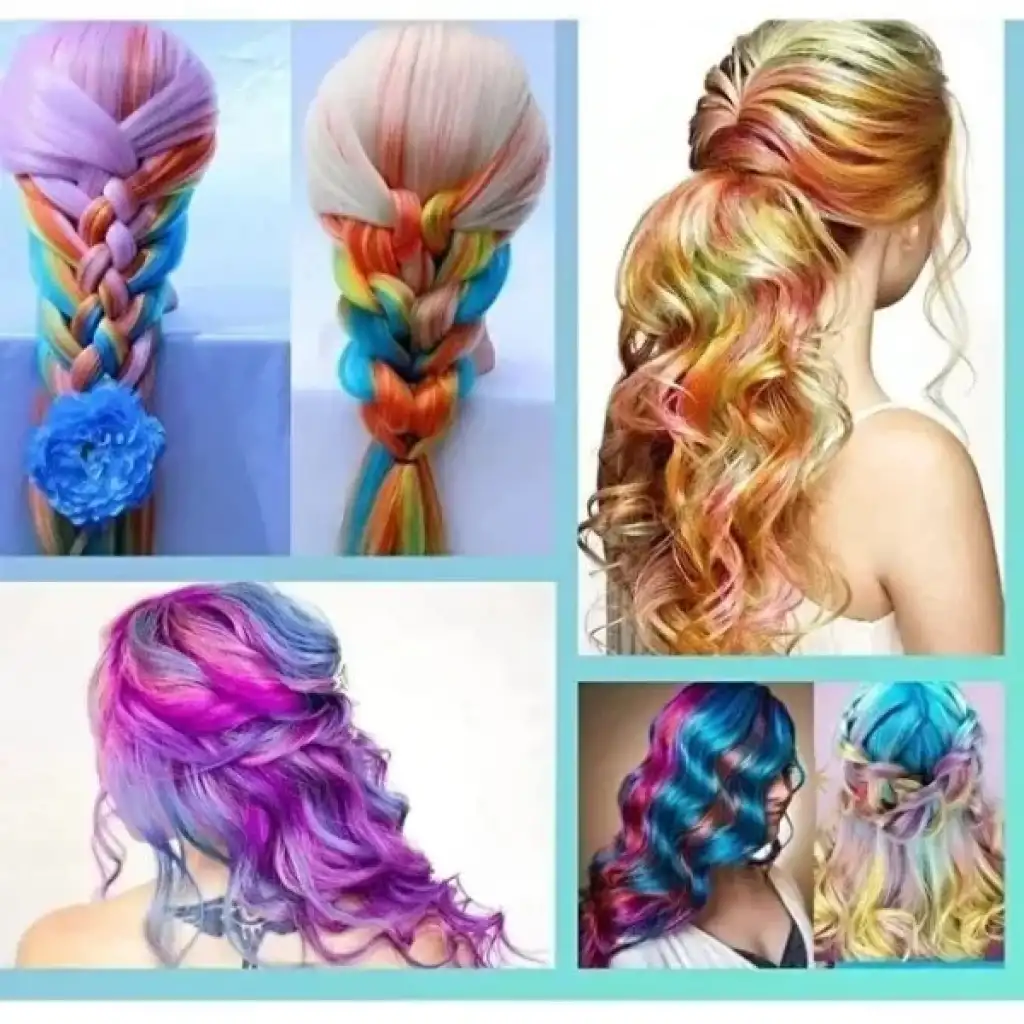 6'LI GEÇİCİ SAÇ TEBEŞİRİ SETİÜrün Özellikleri6’lı geçici saç tebeşiri seti, saç renginde hızlı ve eğlenceli değişiklikler yapmak isteyenler için pratik bir kullanım sunar. Set içerisinde yer alan farklı renk seçenekleri sayesinde saçlara tek tek ya da birlikte uygulanabilen canlı renk geçişleri elde edilebilir. Açılıp kapanabilen kompakt formu, saç tutamlarının rahatça kavranmasına yardımcı olurken kullanım sırasında kontrol sağlamayı kolaylaştırır. Saça temas eden yüzey yapısı sayesinde ürün, saç telleri üzerinde kayarak uygulanır ve saçta geçici renk etkisi oluşturur. Geçici saç renklendirme amacıyla tasarlanan bu set, farklı tarzlar denemek, özel günlerde veya etkinliklerde saç görünümüne renk katmak isteyen kullanıcılar için alternatif bir çözümdür. Renkleri tek başına kullanmak mümkün olduğu gibi birden fazla rengi birlikte uygulayarak daha dikkat çekici stiller oluşturmak da mümkündür.Ürün Teknik Özellikleri Özellik Açıklama Ürün Adı 6'lı Geçici Saç Tebeşiri Seti Set İçeriği 6 adet saç tebeşiri Kullanım Türü Geçici saç renklendirme Form Açılır kapaklı kompakt yapı Uygulama Şekli Saç tutamına sürülerek Paket İçeriği6 adet geçici saç tebeşiri