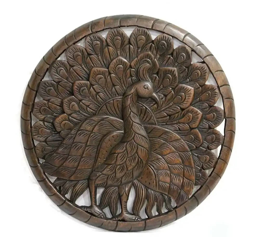 AHŞAP DUVARA ASMALI EL OYMASI PANOÜrün ÖzellikleriAhşap duvara asmalı el oyması pano, 58 cm boyutunda zarif bir dekoratif üründür Ganesha ve Tavuskuşu gibi farklı desen seçenekleriyle sunulmaktadır. Ürün, stok durumuna göre gönderilir. Ahşap malzeme üzerine el oyması işçilikle tasarlanmış bu pano, geleneksel ve estetik bir görünüm sağlar. Evde, ofiste veya çeşitli dekorasyon alanlarında şık bir aksesuar olarak kullanılabilir.Paket İçeriği1 Adet Ahşap Duvara Asmalı El Oyması Pano