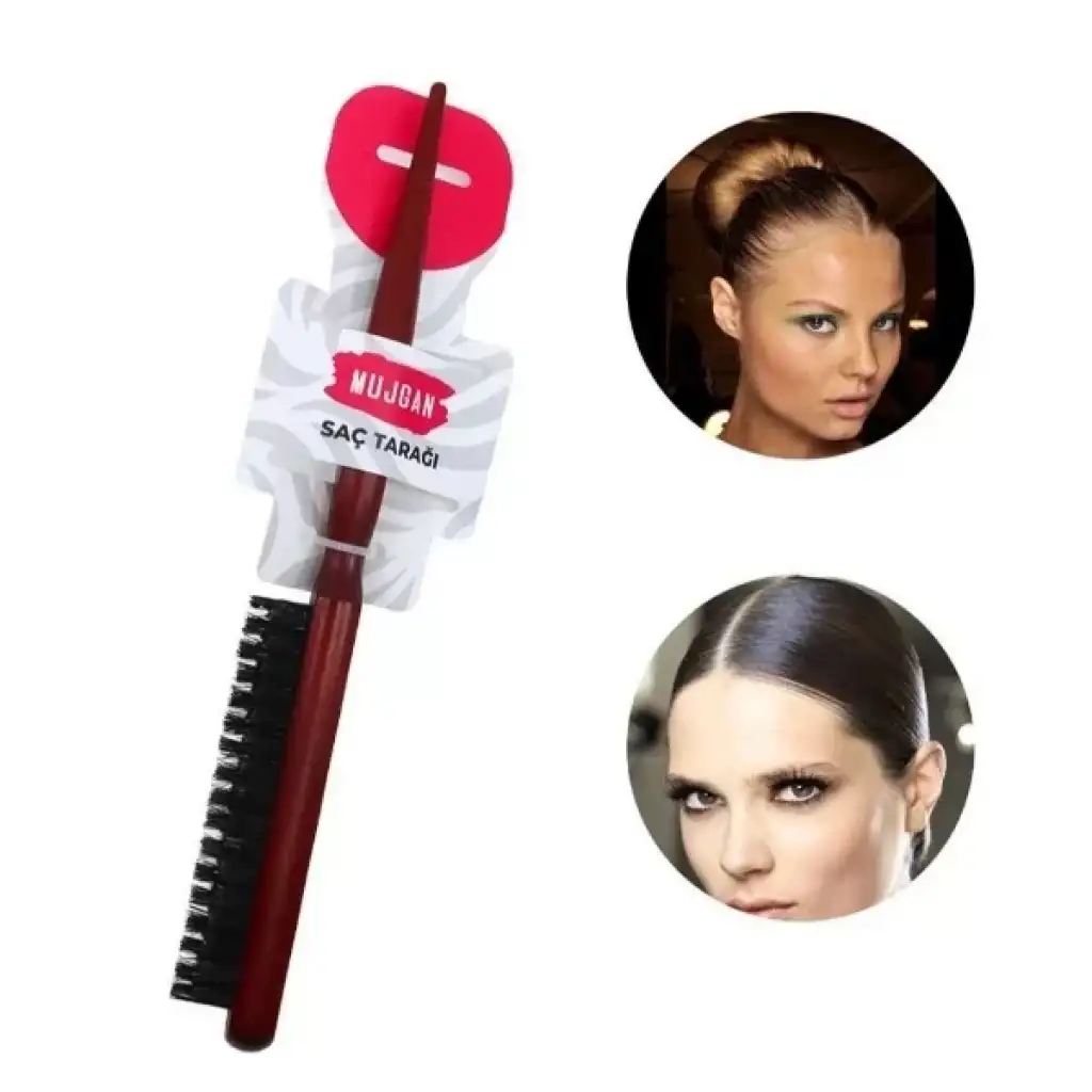AHŞAP SAPLI TOPUZ TARAĞIÜrün ÖzellikleriAhşap saplı topuz tarağı, saçları düzgün şekilde ayırmak ve sıkı, pürüzsüz topuz modelleri oluşturmak için tasarlanmış kullanışlı bir saç bakım aksesuarıdır. İnce ve sık dişli yapısı sayesinde saç tellerini kontrol altına alır ve toplama işlemini daha düzenli hale getirir. Sivri uçlu sap tasarımı saçları bölümlere ayırmayı kolaylaştırır, özellikle topuz, at kuyruğu ve sıkı modellerde hassas şekillendirme imkânı sunar. Ahşap saplı topuz tarağı ergonomik yapısı sayesinde elde rahat tutulur ve kontrollü kullanım sağlar. Dayanıklı gövdesi ile uzun süreli kullanım sunan ince dişli saç tarağı, saç diplerini kabartmak ve hacim vermek için de tercih edilebilir. Günlük kullanımda ve profesyonel kuaför işlemlerinde kullanılabilen Sleek Bun topuz yapma tarağı, saçlara daha düzgün ve bakımlı bir görünüm kazandırmaya yardımcı olur.Ürün Teknik Özellikleri Özellik Açıklama Ürün Adı Ahşap Saplı Topuz Tarağı Malzeme Ahşap sap ve plastik fırça kısmı Renk Görseldeki renk Kullanım Alanı Saç toplama ve şekillendirme Paket İçeriği1 adet ahşap saplı topuz tarağı