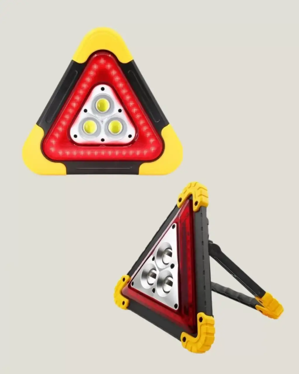 Bu taşınabilir aydınlatma cihazı, üçgen tasarımı ve üç adet yüksek verimli COB LED ışığı sayesinde hem park lambası hem de ikaz lambası olarak çift fonksiyonlu kullanım sağlar. Beyaz ışık modunda güçlü ve zayıf olmak üzere iki kademe aydınlatma seçeneği sunarken, kırmızı ışıkta ise sabit, ikaz ve flash olmak üzere üç farklı ışık modu ile çeşitli durumlara uygun uyarı ışıkları sağlar. Özellikle gece sürüşlerinde, acil durumlarda veya kamp gibi açık hava aktivitelerinde güvenlik amacıyla kullanılmak üzere tasarlanmıştır.
