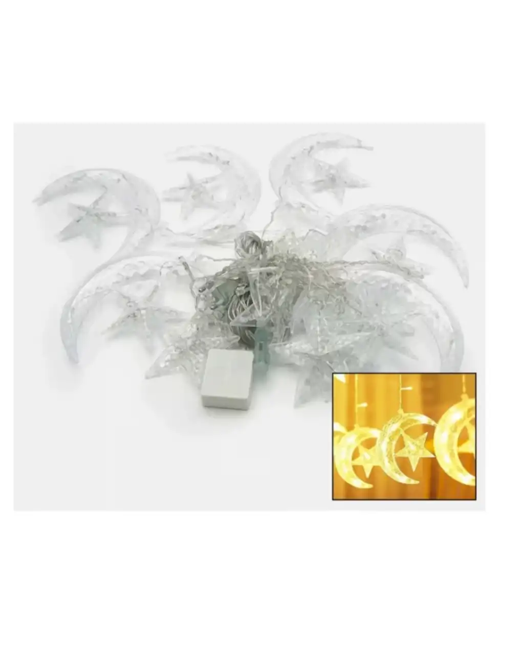 Hilal ve yıldız figürleri estetik bir bütünlük içinde tasarlanmıştır. Mekâna yerleştirildiğinde hem dekoratif hem işlevsel bir aydınlatma çözümü sunar.İki aydınlatma modu ile kullanım esnekliği sağlar. Sabit mod huzurlu bir ortam yaratırken, yanıp sönme modu daha canlı bir atmosfer oluşturur.Yüksek kaliteli malzeme yapısı ve güvenli kablo tasarımı sayesinde gönül rahatlığıyla kullanılabilir. İç mekân dekorasyonunda güçlü bir tamamlayıcı üründür.