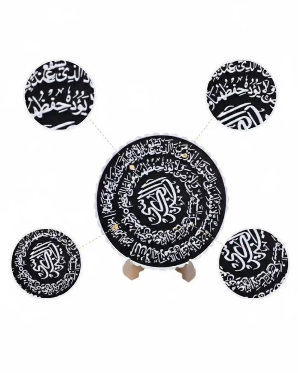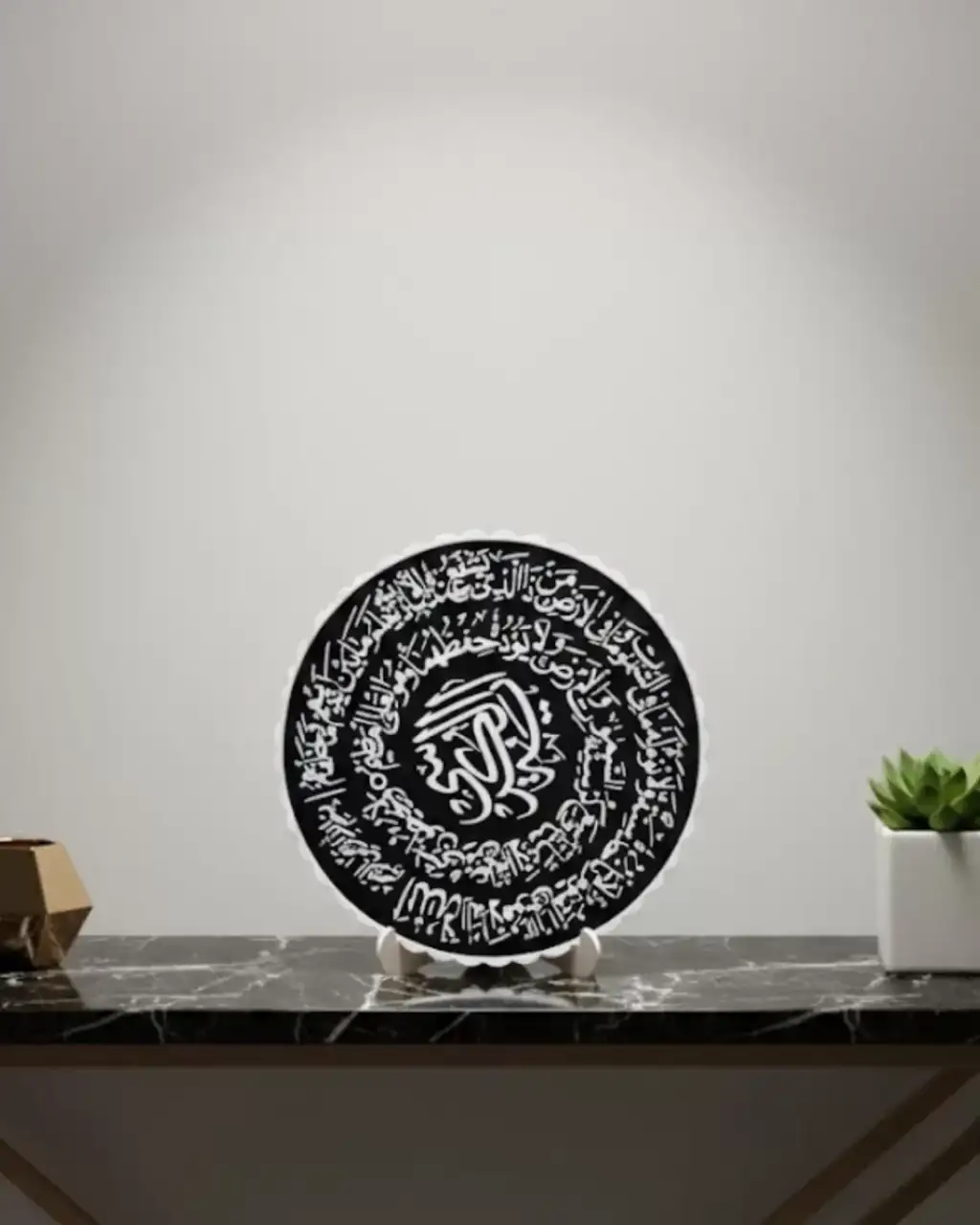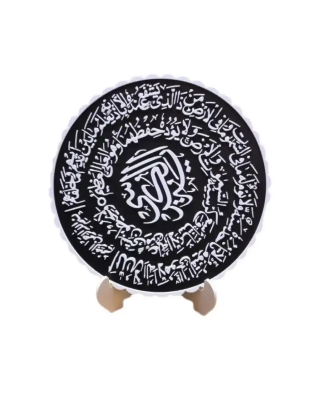 Bu dekoratif pano, Ayetel Kürsi’nin manevi anlamını estetik bir tasarım ile sunar. Siyah beyaz kontrast yapısı sayesinde modern dekorasyonlara uyum sağlar.Standlı yapısı sayesinde pratik kullanım sunar. Konsol, kitaplık ve masa üstünde rahatlıkla sergilenebilir.Hem dini hem dekoratif bir obje arayanlar için ideal bir tercihtir.