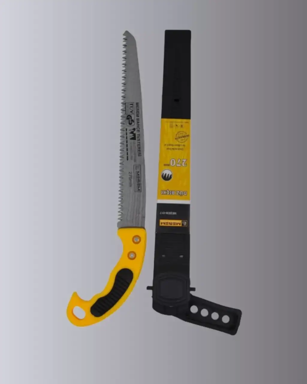 Budama ve bahçe bakım işlemlerinde güvenilir bir kesim performansı sunan bu bahçe testeresi, lazer bilenmiş düz bıçak yapısıyla öne çıkar. 270 mm bıçak uzunluğu, ince ve orta kalınlıktaki dallar için uygundur.Kullanıcı ergonomisi düşünülerek tasarlanmış sap yapısı, kaymadan rahat bir tutuş sağlar. Kılıflı tasarımı sayesinde hem güvenli hem de pratik bir kullanım sunar.