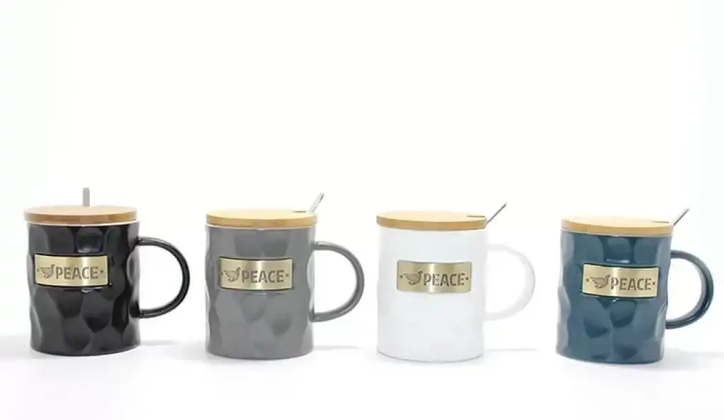 AsilTech Bambu Kapaklı Porselen Kupa Bardak