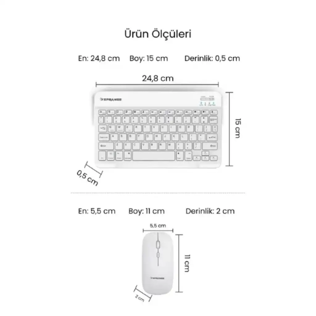 BEYAZ KABLOSUZ KLAVYE VE MOUSE SETİÜrün ÖzellikleriBeyaz Kablosuz Klavye ve Mouse Seti, sade ve modern tasarımıyla çalışma alanınıza ferah bir görünüm katar. Kablosuz bağlantı teknolojisi sayesinde bilgisayar, telefon ve tablet gibi birçok cihazla uyumlu çalışarak kullanım özgürlüğü sunar. Türkçe Q düzenine sahip multimedya klavyesi, yazı yazmayı daha hızlı ve konforlu hâle getirirken fonksiyon tuşlarıyla pratik kullanım avantajı sağlar. Hem klavye hem de mouse üzerinde yer alan Type-C şarj girişleri hızlı ve verimli şarj imkânı sunarak uzun süreli kullanımda yüksek performans sağlar. Hafif gövdesi ve kompakt tasarımı taşımayı kolaylaştırırken ergonomik mouse formu uzun süreli kullanımda bile rahat bir tutuş sağlar. Şık, minimal ve kullanışlı yapısıyla hem günlük kullanım hem de ofis ortamları için ideal bir settir.Paket İçeriği1 Adet Beyaz Kablosuz Klavye Ve Mouse Seti