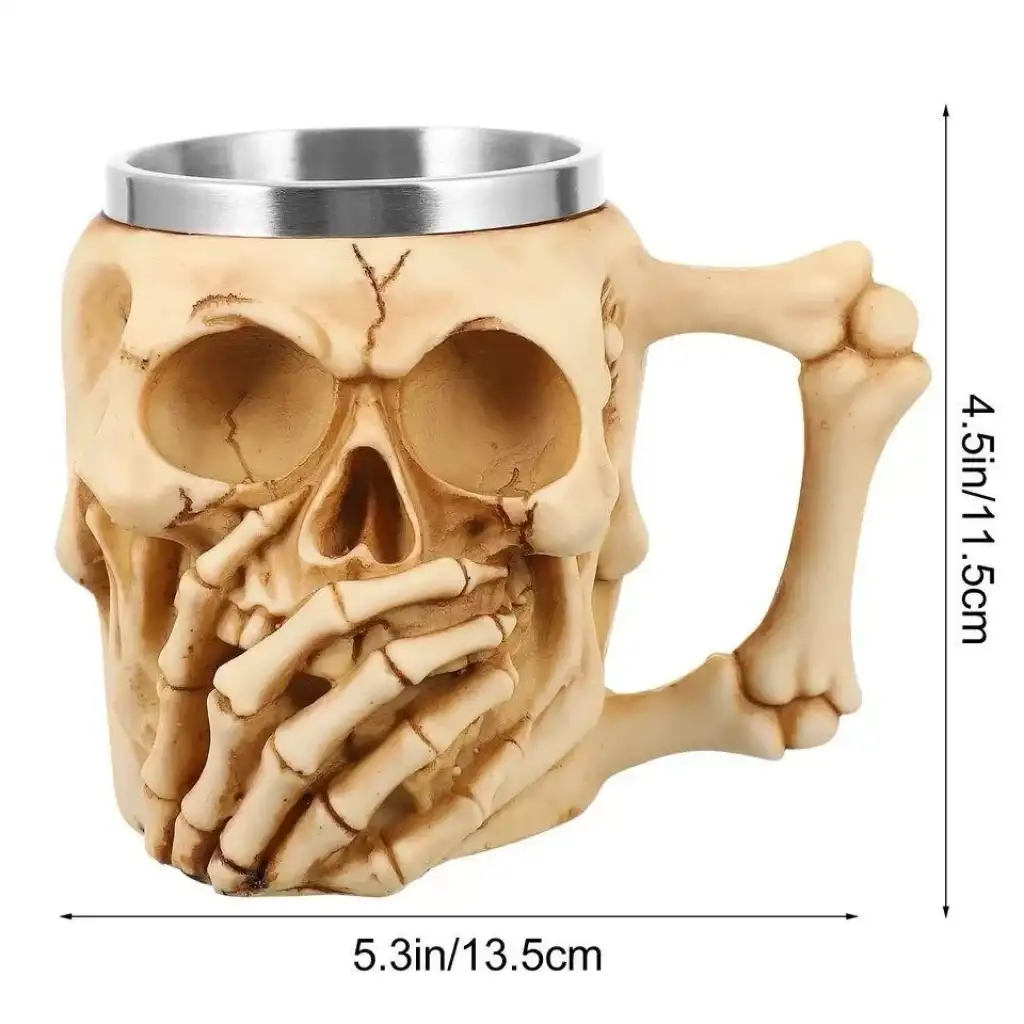 AsilTech Taçlı Kurukafa Kralı 3D Kabartmalı Çelik Kupa Bardak