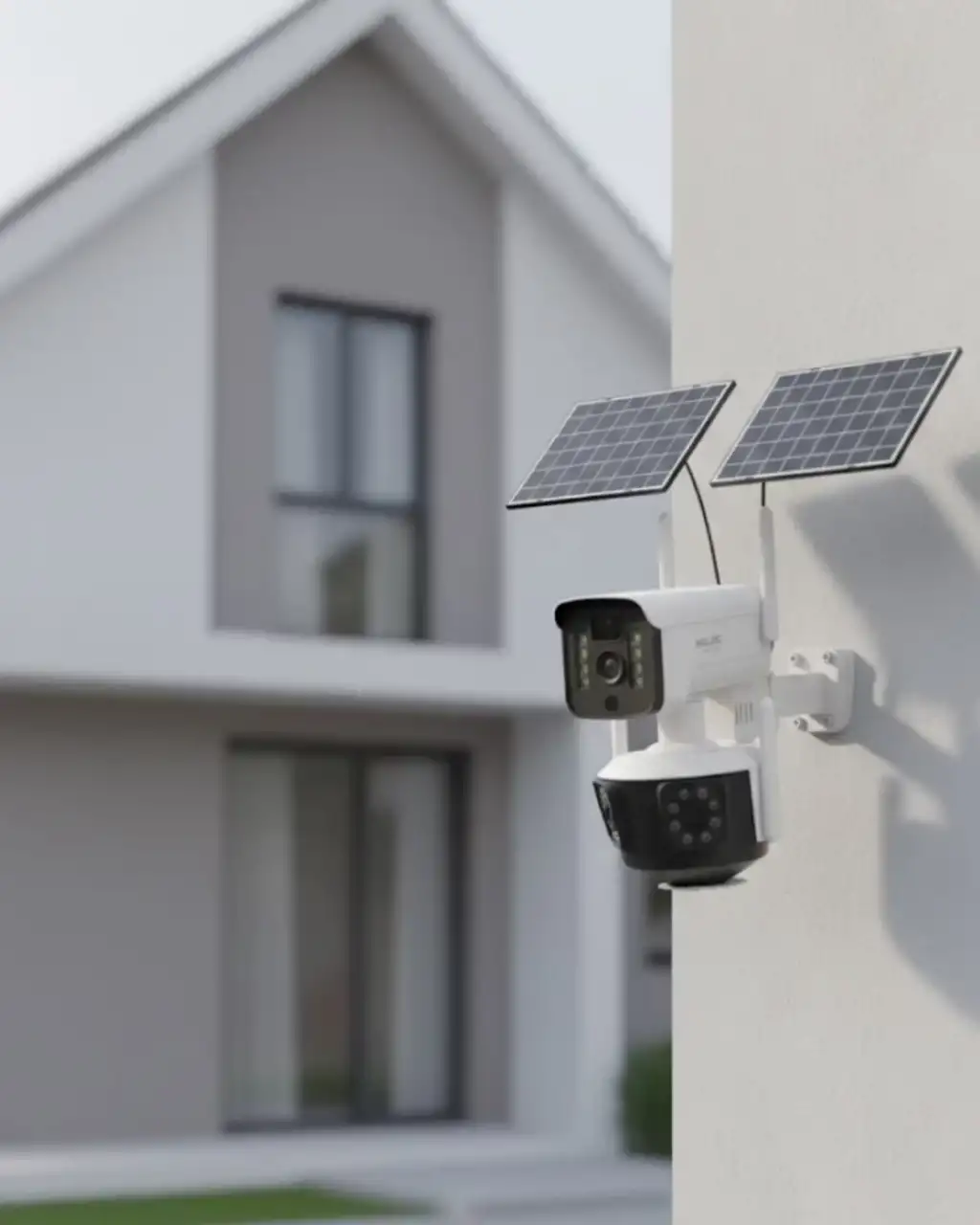 Kablosuz çift solar panelli IP kamera, modern güvenlik ihtiyaçlarına yönelik olarak tasarlanmıştır. 7.5W + 7.5W güneş panelleri ile güçlü ve sürdürülebilir enerji üretimi sağlar. 12000mAh batarya, uzun süreli kullanım sunar.4G destekli yapı, WiFi olmayan alanlarda dahi uzaktan izleme imkanı tanır. Çoklu lens teknolojisi sayesinde toplam 9MP çözünürlük sunar. Gece görüş, hareket algılama ve akıllı takip sistemi güvenliği üst seviyeye taşır.Karşılıklı sesli görüşme, TF kart kayıt desteği ve mobil uygulama kontrolü ile tam güvenlik sağlar. Dayanıklı dış mekan tasarımı, her koşulda güvenle kullanılmasını sağlar. Enerji tasarruflu ve çevre dostu bir güvenlik çözümüdür.