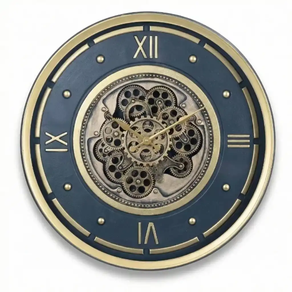 ÇARKLI DUVAR SAATİ 60 CMÜrün ÖzellikleriÇarklı duvar saati 60 cm modeli, büyük boy tasarımı ve dikkat çekici mekanik çark detaylarıyla bulunduğu ortamda güçlü bir dekoratif etki oluşturur. Koyu zemin üzerine işlenen açık tonlu çerçeve ve Roma rakamları, saate klasik bir duruş kazandırırken iç bölümde yer alan çark tasarımı modern ve endüstriyel bir görünüm sunar. 60 cm genişliği sayesinde geniş duvar yüzeylerinde boşluk hissini ortadan kaldırarak mekânın odak noktası haline gelir. Salon, ofis, kafe, restoran ve loft tarzı alanlarda estetik bir tamamlayıcı olarak kullanılabilir. Net ve büyük rakam yapısı uzaktan rahat okunabilirlik sağlarken, sessiz akan mekanizması gürültü oluşturmadan konforlu kullanım sunar. Dayanıklı gövde yapısı uzun süreli kullanım için tasarlanmış olup dekoratif olduğu kadar fonksiyonel bir duvar saati arayanlar için ideal bir tercihtir. Zamansız tasarımı sayesinde klasik, modern ve endüstriyel dekorasyon stilleriyle uyum sağlar.Paket İçeriği1 adet çarklı duvar saati 60 cm