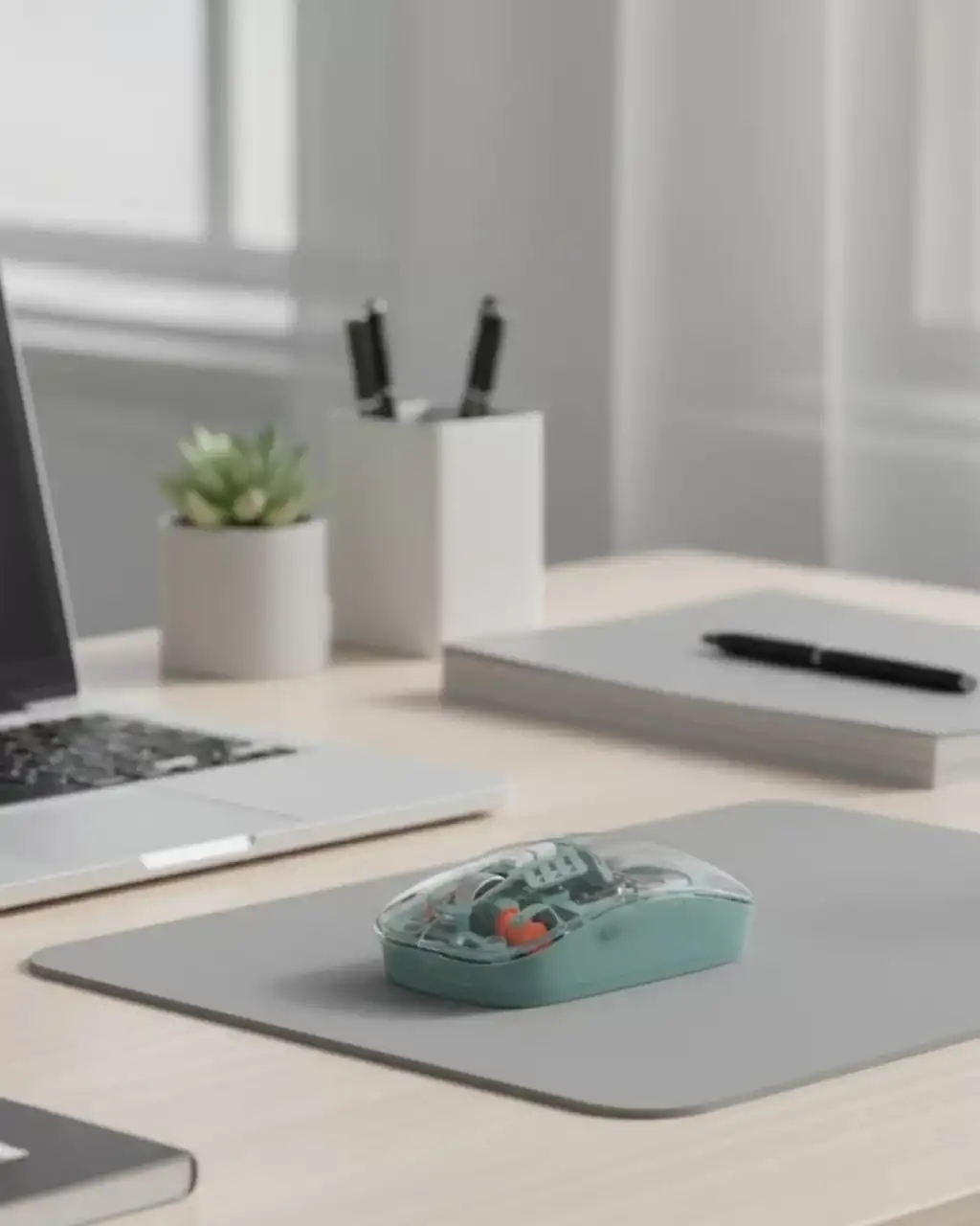 Şeffaf kablosuz mouse, sade tasarımı ve fonksiyonel özellikleriyle masa düzenini tamamlayan modern bir bilgisayar aksesuarıdır. Pilli çalışma sistemi, şarj etme gereksinimini ortadan kaldırarak kullanım kolaylığı sunar. Pil ile çalışması sayesinde her ortamda pratik bir kullanım sağlar.Bluetooth ve 2.4G USB bağlantı desteği, farklı cihazlarla uyumlu çalışmasına olanak tanır. Bluetooth bağlantı, kablo karmaşasını ortadan kaldırırken USB alıcı seçeneği masaüstü bilgisayarlar için ideal çözüm sunar. Çift bağlantı modu, kullanıcıya esneklik kazandırır.Ayarlanabilir DPI seviyesi, kullanım alışkanlıklarına göre hassasiyet ayarı yapılmasına imkân tanır. Şeffaf gövde tasarımı, teknolojik ve şık bir görünüm sunar. Manyetik üst kapak yapısı, pratiklik ve sağlamlık açısından avantaj sağlar.Sessiz tıklama özelliği, özellikle ortak çalışma alanlarında konforlu bir deneyim sunar. Ergonomik yapısı, uzun süreli kullanımlarda el ve bilek yorgunluğunu azaltmaya yardımcı olur. Günlük ve ofis kullanımı için ideal bir mouse seçeneğidir.