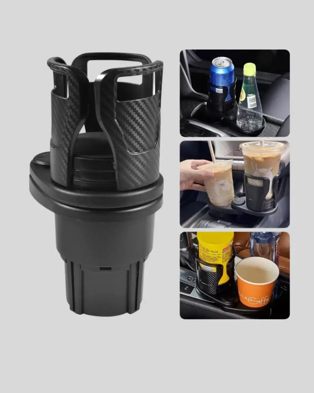 360° dönebilen çiftli bardak tutucu, araç içi düzeni sağlamanın en etkili yollarından biridir. İkisi bir arada tasarımı tek bardak yuvasını iki bölmeye ayırarak kullanım alanını genişletir. Ayarlanabilir açıklık sistemi sayesinde büyük veya küçük tüm bardakları, su şişelerini, termosları kolayca yerleştirebilirsiniz. Kalınlaştırılmış plastik malzeme uzun süre dayanıklılık sunarken su geçirmez yüzey kolay temizlenebilir. Karbon fiber desenli modern görünümü aracınıza şık bir dokunuş katar. 360° döner tasarımı sayesinde bardakları istediğiniz açıya çevirerek konforlu kullanım sağlar. Uzun yolculuklarda, günlük trafikte ve aile kullanımında büyük kolaylık sunan fonksiyonel bir araç aksesuarıdır.