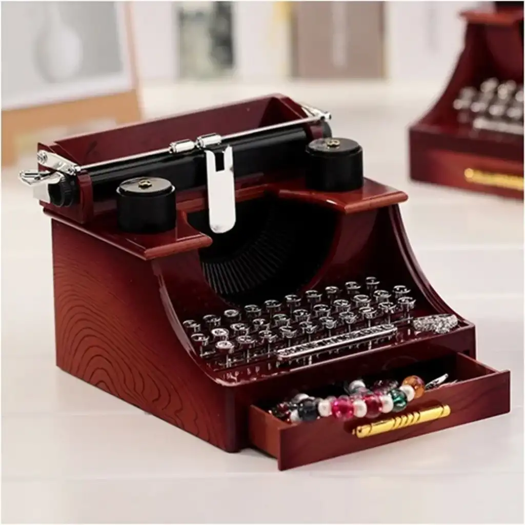 DAKTİLO MÜZİK KUTUSUÜrün ÖzellikleriDaktilo müzik kutusu kaliteli sert APS malzemeden üretilmiş olup detaylı tasarımı sayesinde gerçek bir daktilo görünümü sunar. Yan kısmındaki kol çevrildiğinde nostaljik bir müzik çalar ve dekoratif havasıyla bulunduğu ortama şıklık katar. İçerisinde küçük eşyalarınızı saklayabileceğiniz bir çekmece bulunur. 15 x 11 x 15 cm ölçülerindedir ve hem koleksiyonluk hem de hediye olarak tercih edilebilecek özel bir üründür.Paket İçeriği1 adet Daktilo Müzik Kutusu
