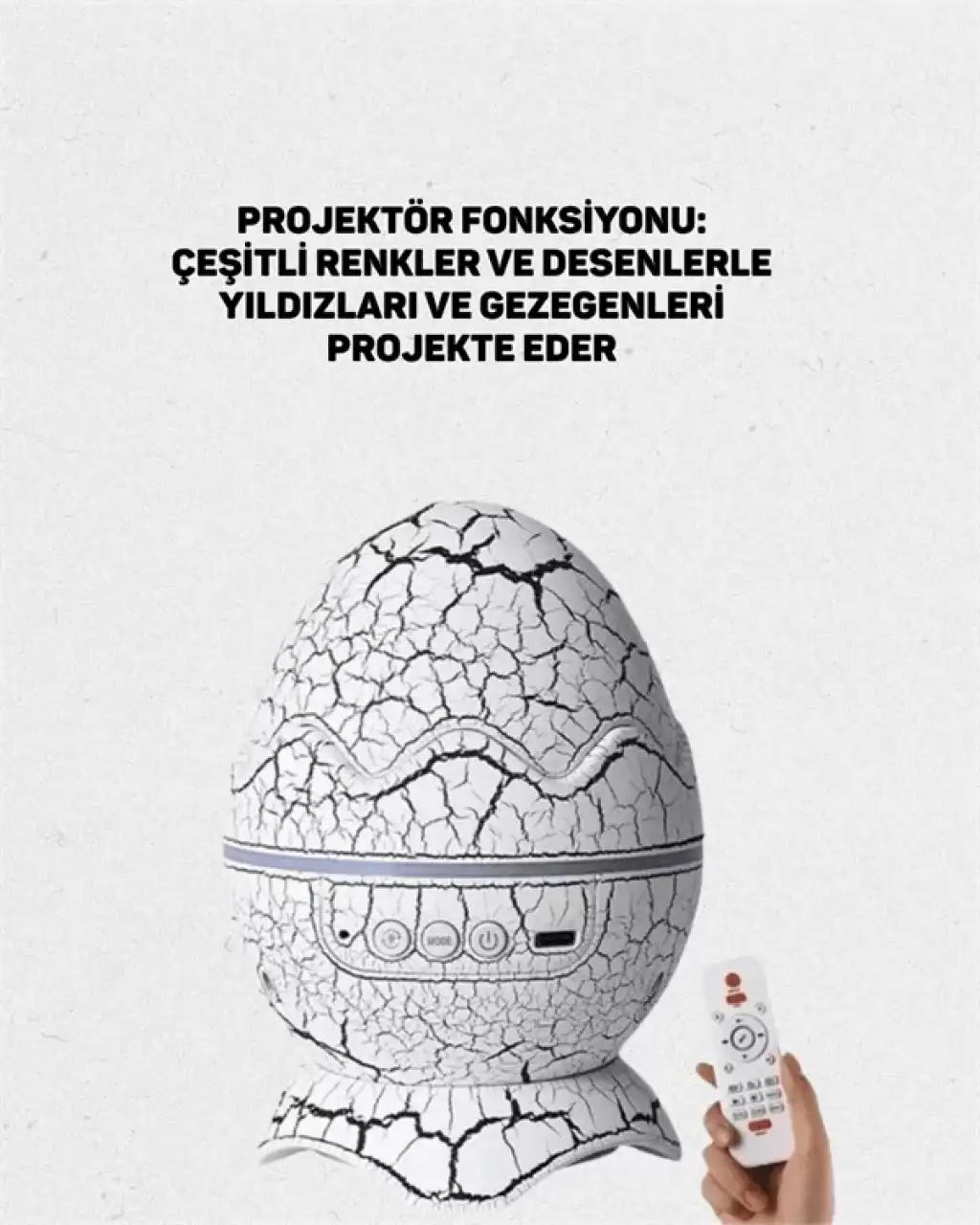Bu ürün sadece bir ışık kaynağı değil, aynı zamanda dekoratif bir objedir. Dinozor yumurtası formu sayesinde çocukların ilgisini çekerken, ev dekorasyonuna modern ve eğlenceli bir dokunuş katar. Gece uykusuna geçişi kolaylaştırır, huzurlu bir atmosfer sunar. Partilerde, film gecelerinde ya da meditasyon zamanlarında kullanılarak çok yönlü bir kullanım sağlar.