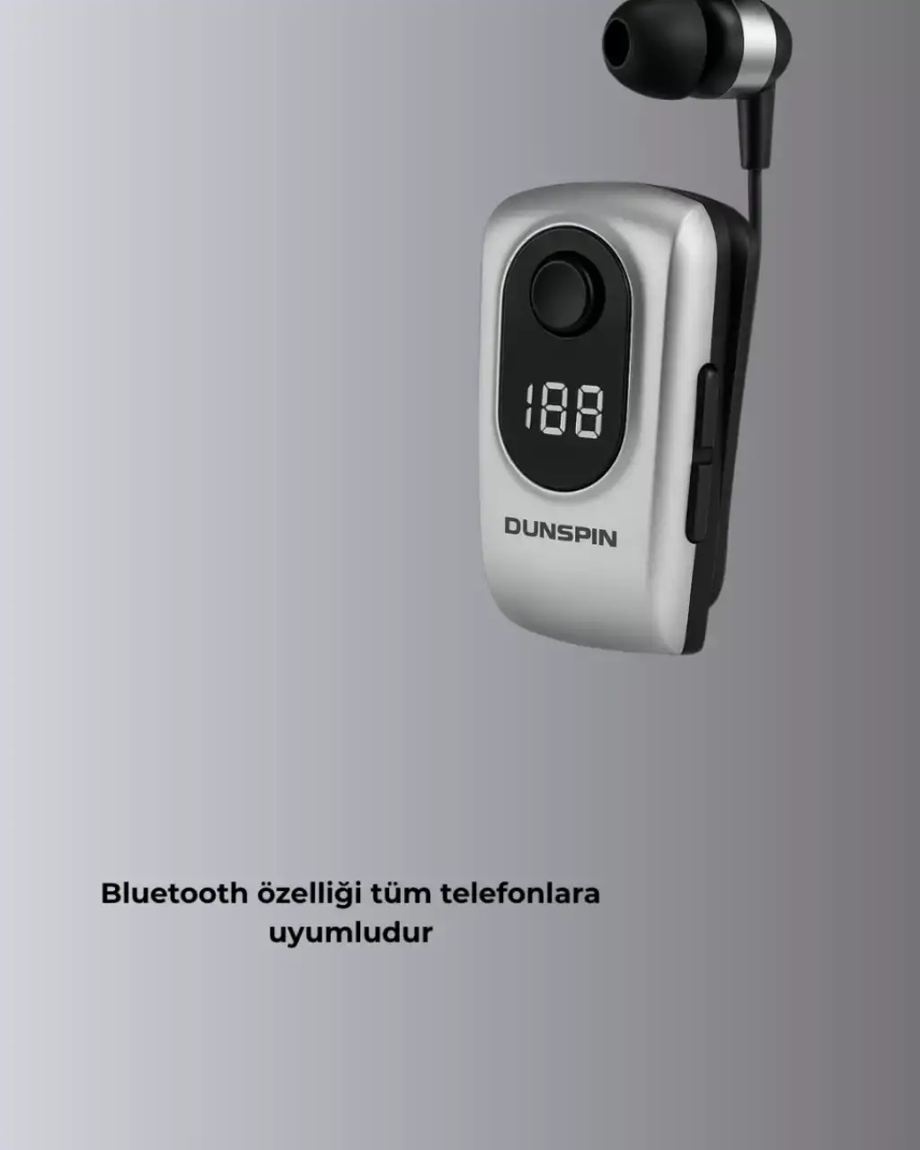 Yüksek performanslı Bluetooth 5.2 teknolojisiyle donatılmış bu kulaklık, 10 metreye kadar güçlü sinyal sağlar. Klipsli tasarımı sayesinde gömleğe kolayca takılır ve günlük kullanımda rahatlık sunar. Titreşimli arama bildirimi özelliği ile önemli çağrılar asla kaçmaz. 25 saate kadar konuşma ve müzik dinleme süresi sunan 140 mAh bataryası, sadece 20 dakikada şarj olur. Dijital ekranı sayesinde şarj durumunu her an takip edebilirsiniz.