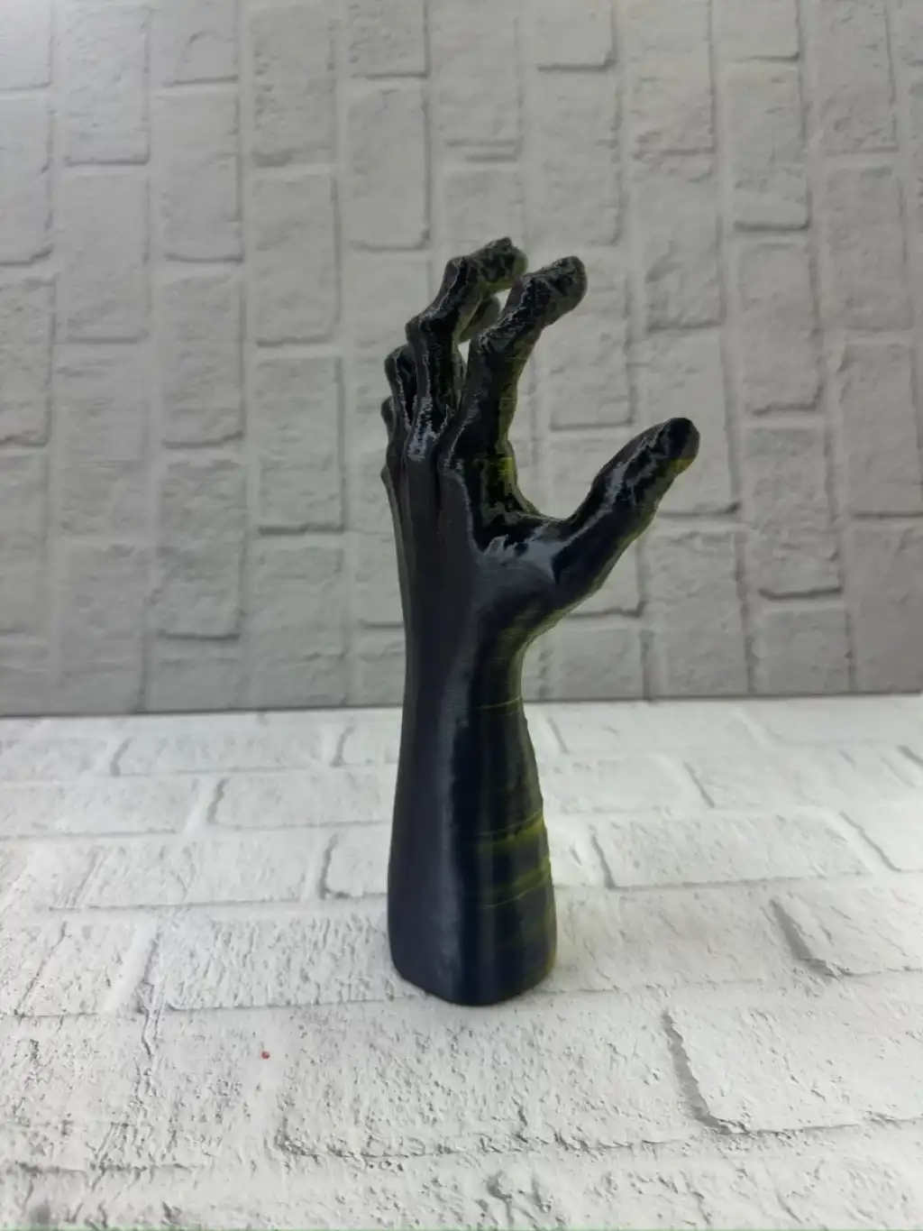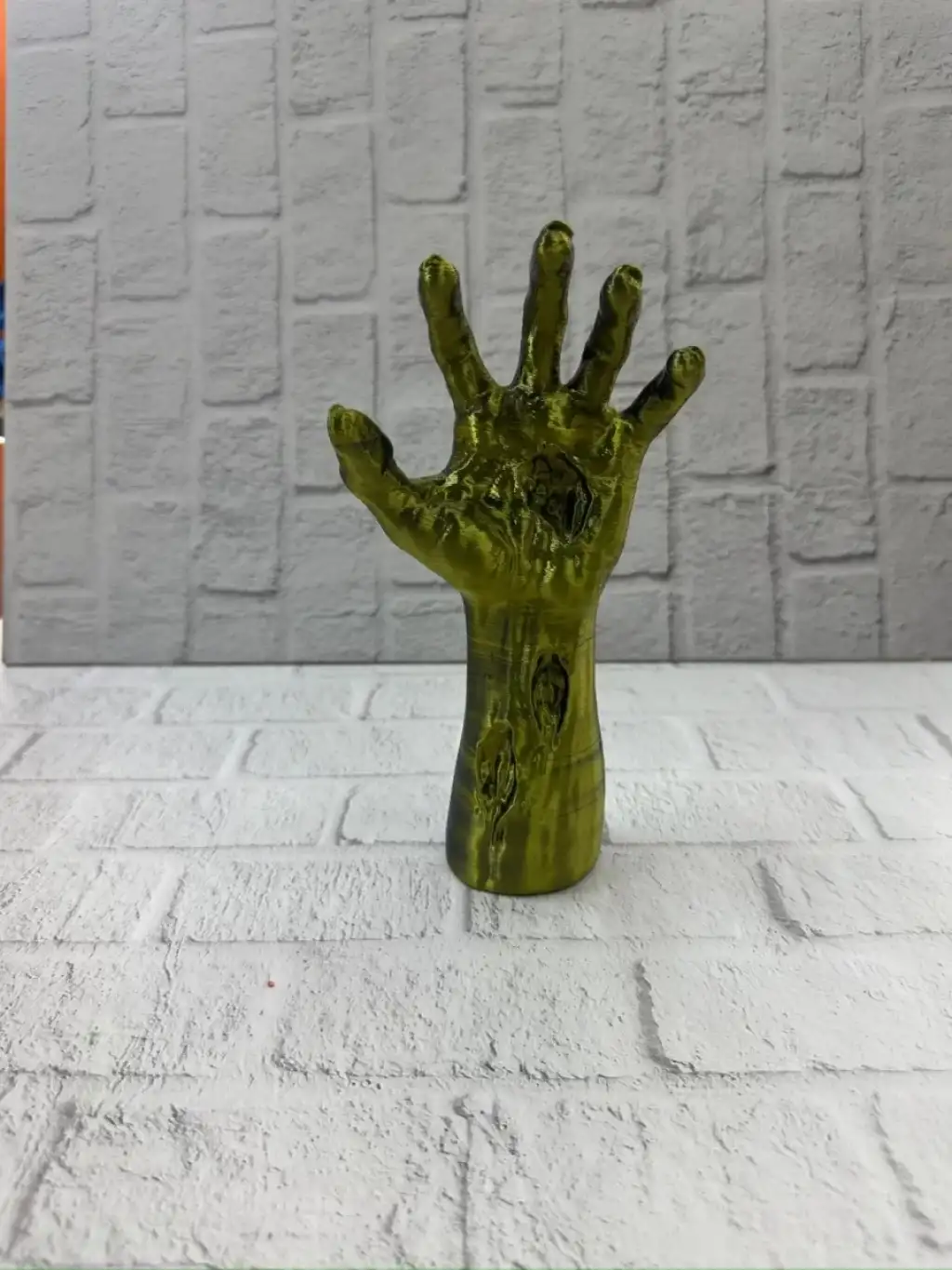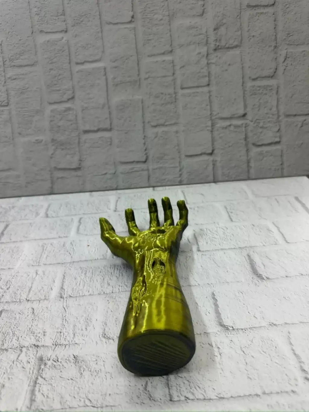 Altın ve yeşil tonlarının birleştiği bu özel el figürü, dekoratif objeler arasında özgün tasarımıyla öne çıkar. 22×7 cm boyutu, masaüstü dekorasyonlar için ideal ölçüdedir. Ürün, parmakların yukarı açık şekilde tasarlanmış formuyla adeta bir hareket anını donduruyormuş gibi görünür. Bu detay, heykelin enerjik ve canlı bir karakter kazanmasını sağlar.El figürleri; koruma, iletişim, üretkenlik ve ruhsal enerji gibi anlamlar taşıdığı için hem modern hem mistik dekorasyonlarda sıkça kullanılır. Bu heykel, evinizde veya ofisinizde dikkat çekici bir odak noktası oluşturur. Raf, vitrin, sehpa veya çalışma köşelerinde sergilendiğinde hem şık hem de sanatsal bir duruş sergiler.Koleksiyon ürünleri sevenlere, fantastik dekor meraklılarına, modern sanat objeleri toplayanlara ve eşsiz hediye arayanlara hitap eden özel bir parçadır. Yüzey dokusundaki detaylar, ışığı yansıtma biçimi ve renk tonlarıyla bulunduğu ortamın dekorasyonuna güçlü bir tarz katar.