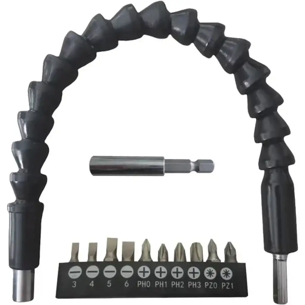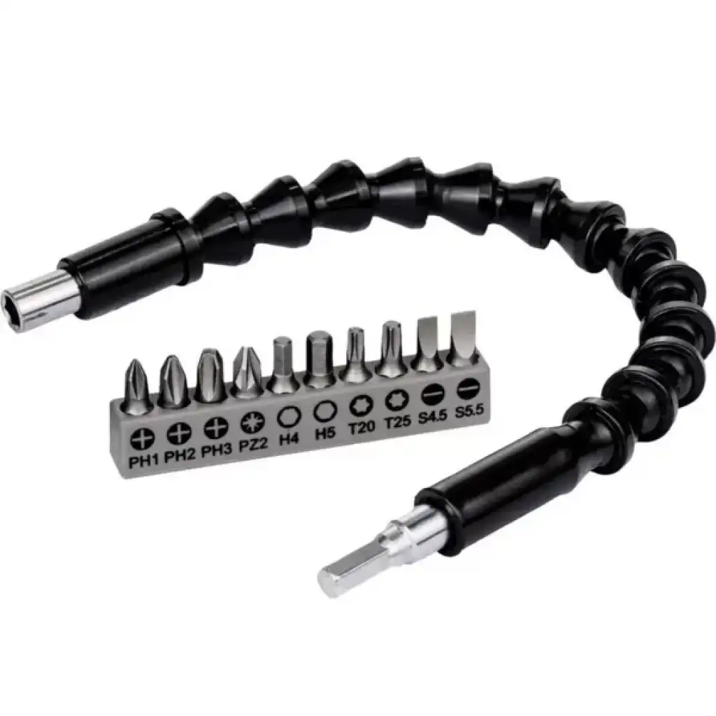 ESNEK ŞAFTLI TORNAVİDA UCU SETİÜrün ÖzellikleriEsnek şaftlı tornavida ucu seti, Phillips (Yıldız), düz uçlu, Torx (Yıldız-çentikli), Hex (Altıgen) gibi çeşitli uç tipleriyle farklı vida başlıklarına uyum sağlar. PH, H, T, SL gibi uç tipleriyle geniş bir kullanım alanı sunar. Esnek uzatma aparatı, ulaşılması zor yerlerde vidalama yapmanıza imkan tanır (örneğin mobilya köşeleri, dar alanlar gibi). Uç kısmı manyetiktir, böylece vida uçları kolayca tutturulur ve düşmez. Elektrikli matkap, vidalama makinesi veya manuel tornavida ile uyumludur. Evde tamir işleri, mobilya montajı, elektronik cihaz açma işlemleri için oldukça kullanışlıdır. Esnek şaftı 360 derece bükülebilir, bu da sert açılarda rahat çalışmanızı sağlar.Paket İçeriği1 Adet Esnek Şaftlı Tornavida Ucu Seti