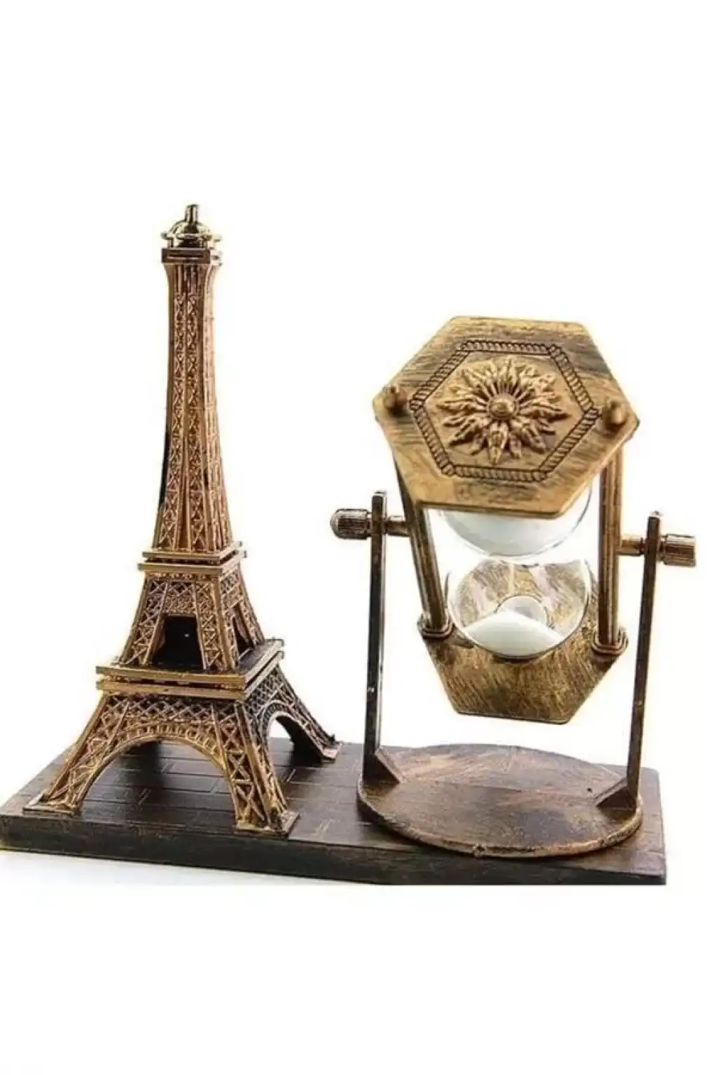 Klasik ve Şık Tasarımlı Demir Kule Kum SaatiZamansız bir dekorasyon öğesi olan Demir Kule Kum Saati, klasik tarzı ve estetik görünümü ile her mekâna sofistike bir dokunuş katar. Yüksek kaliteli ahşap ve metal malzemelerden üretilmiş olan bu zarif kum saati, hem dayanıklılığı hem de şık tasarımıyla dikkat çeker. Dekoratif bir obje olarak kullanılmasının yanı sıra zamanı ölçme işlevini de yerine getirir. Uzun yıllar boyunca sağlamlığını koruyacak şekilde üretilen bu kum saati, klasik dekorasyon severler için mükemmel bir seçimdir.