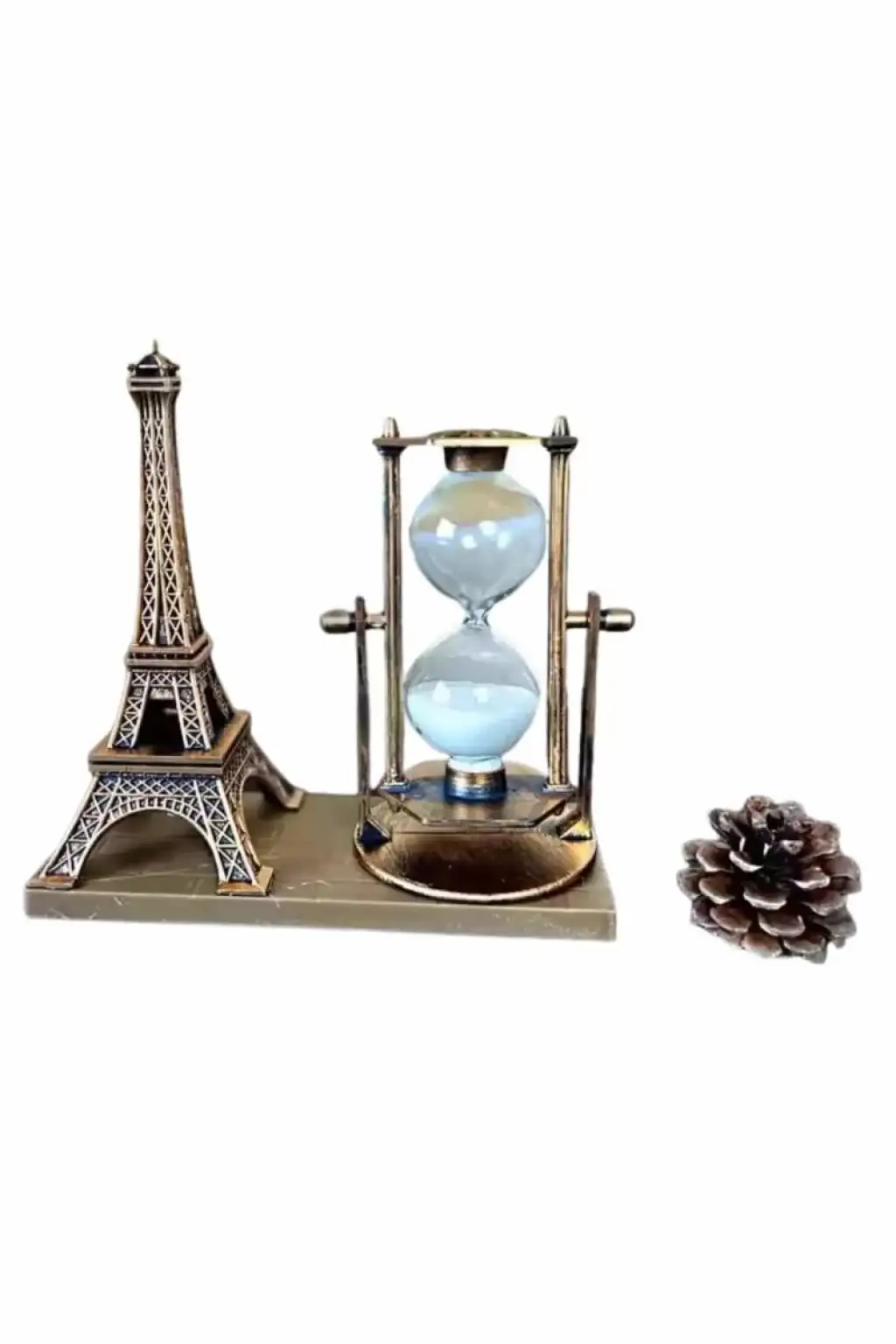 Klasik ve Şık Tasarımlı Demir Kule Kum SaatiZamansız bir dekorasyon öğesi olan Demir Kule Kum Saati, klasik tarzı ve estetik görünümü ile her mekâna sofistike bir dokunuş katar. Yüksek kaliteli ahşap ve metal malzemelerden üretilmiş olan bu zarif kum saati, hem dayanıklılığı hem de şık tasarımıyla dikkat çeker. Dekoratif bir obje olarak kullanılmasının yanı sıra zamanı ölçme işlevini de yerine getirir. Uzun yıllar boyunca sağlamlığını koruyacak şekilde üretilen bu kum saati, klasik dekorasyon severler için mükemmel bir seçimdir.