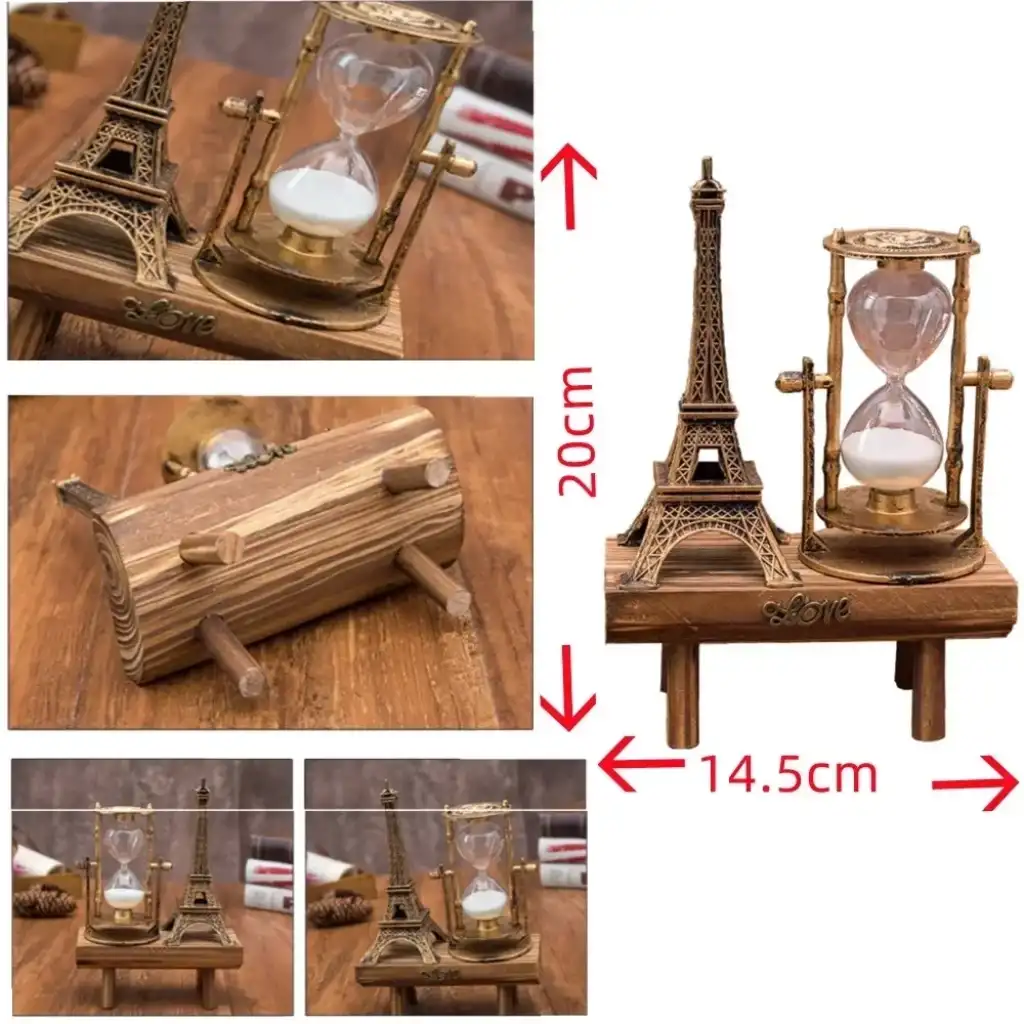 EYFEL KUM SAATİÜrün ÖzellikleriEyfel Kum Saati, 20 cm x 14.5 cm boyutunda, eskitme nostaljik bir tasarıma sahip olup oldukça dikkat çekici bir dekoratif üründür. Kaliteli plastik malzemeden üretilmiştir ve ev ile iş yerlerinizde dekoratif amaçla kullanılabilir. Kum saati, şık bir görünüm sunmasının yanı sıra yanında bulunan Eyfel Kulesi dekoruyla da estetik açıdan zenginleştirilmiştir. Eskitme görünüme sahip bu kum saati, nostalji severler için mükemmel bir hediye alternatifi olabilir.Paket İçeriği1 Adet Eyfel Kum Saati
