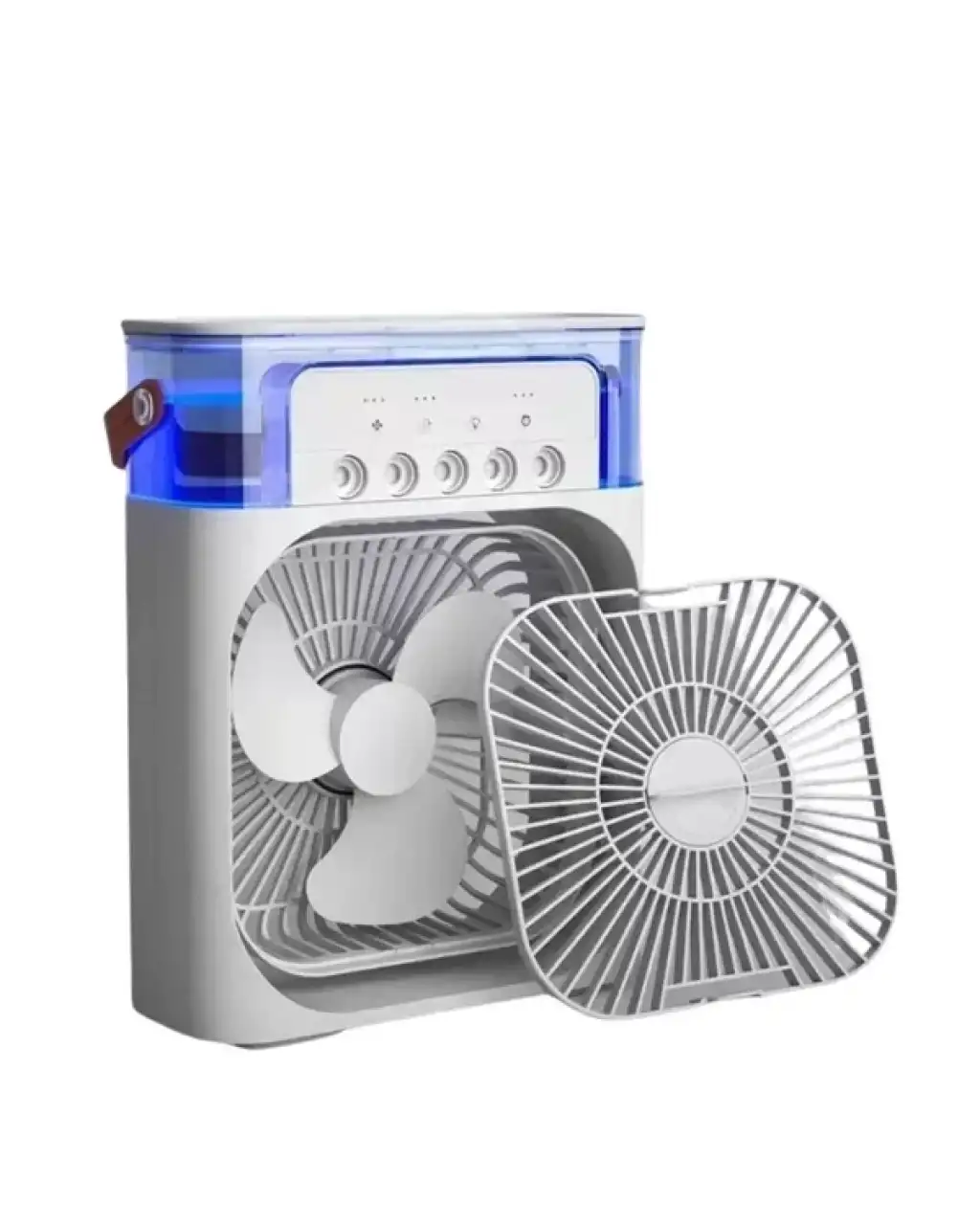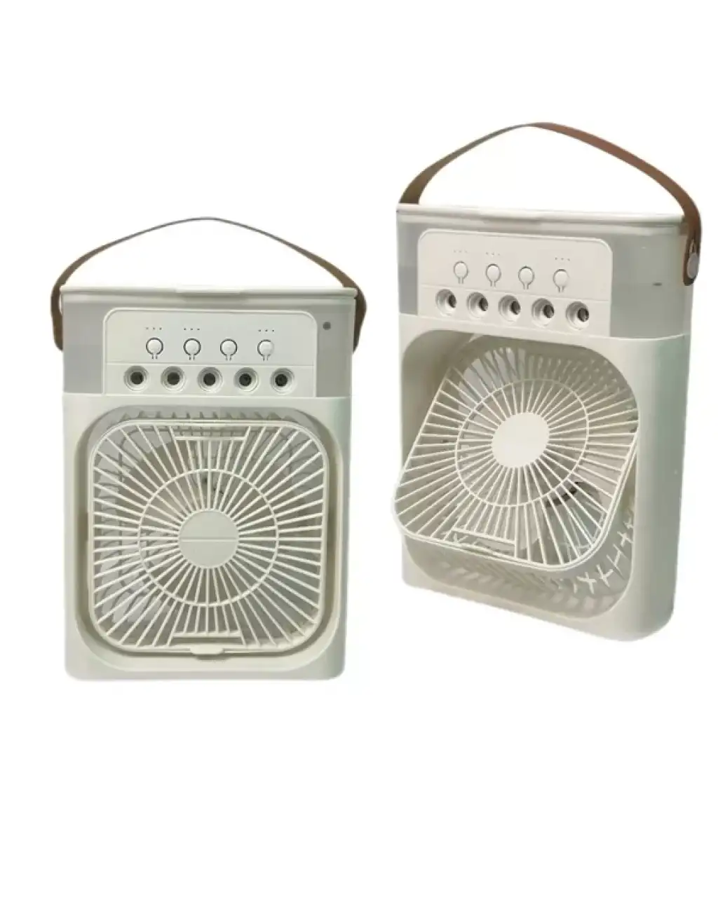 Fan, klima ve nemlendirici işlevlerini tek bir cihazda sunan bu çok fonksiyonlu masaüstü fan, hem pratik hem de şık bir çözüm sunar. Özellikle yaz aylarında sıcaklıkla baş etmekte zorlananlar için birebir. 5 delikli atomizer çıkışı sayesinde havayı homojen şekilde dağıtarak etkili bir soğutma sağlar. 3 farklı fan hızı ve 3 sprey seviyesi ile ihtiyaç duyduğunuz ayarı kolayca yapabilirsiniz. 500ML'lik geniş haznesi sayesinde içerisine buz ve su ekleyerek uzun süre serin kalabilirsiniz. USB ve Type-C bağlantısı sayesinde birçok cihazla uyumlu çalışır. Taşınabilir yapısıyla yaz tatillerinde, kamp alanlarında veya açık hava etkinliklerinde kolaylık sağlar. 7 renkli gece lambası fonksiyonu ile loş bir ışık sağlar ve ortama huzur katar. Düşük ses seviyesi sayesinde gece uykusunu bölmeden kullanılabilir. Enerji tasarrufu sağlayan motor yapısı, hem çevreyi hem cebinizi korur. Modern ve kompakt tasarımıyla her alanda kullanım için idealdir.
