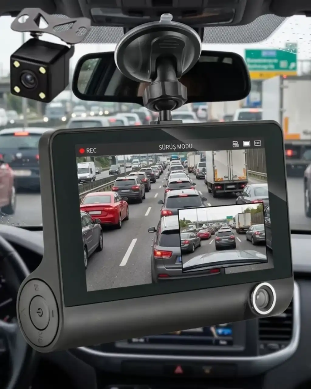 Bu araç içi kamera, gündüz ve gece fark etmeksizin yüksek performanslı kayıt sağlar. Full HD 1080P çözünürlük ile net ve detaylı görüntü elde edilir. Ön ve arka kamera sistemi ile çift yönlü güvenlik sağlanır.170° geniş açı lens daha geniş yol görüntüsü sunar. WDR teknolojisi ışık dengesi sağlar. Gece görüş özelliği karanlık ortamlarda net kayıt sunar.Döngüsel kayıt ve 32 GB microSD desteği sayesinde kesintisiz kullanım sağlar. G-sensör çarpışma anında kaydı kilitler.Park modu ve hareket algılama ile 7/24 araç güvenliği sağlanır. 4 inç LCD ekran anlık görüntü kontrolü sunar.Araç kamerası, oto güvenlik kamerası ve çift lens araç DVR kategorisinde güçlü bir üründür.