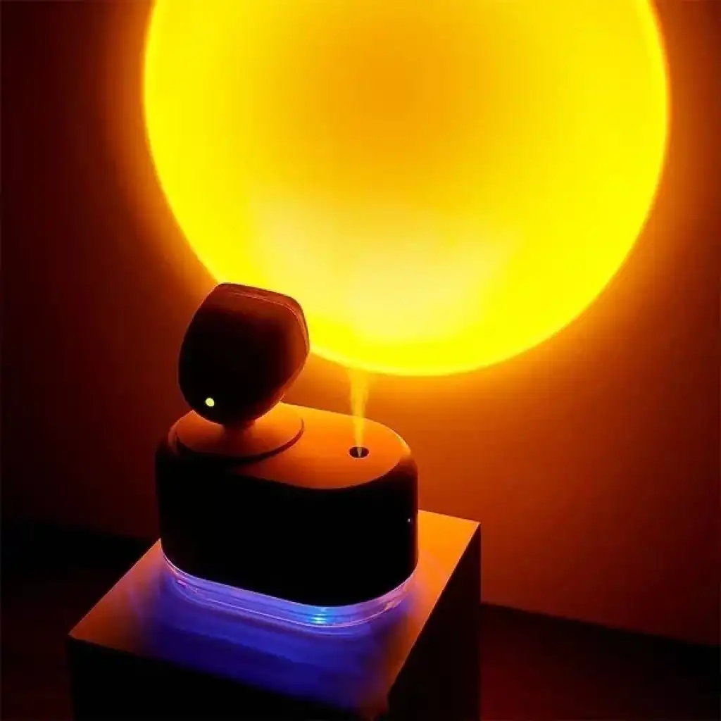 GÜN BATIMI LAMBALI HAVA NEMLENDİRİCİÜrün ÖzellikleriGün batımı lambalı hava nemlendirici, 300 ml su kapasitesine sahip olup USB şarj ile çalışmaktadır. 13.6 x 13.6 x 8.5 cm boyutlarındaki kompakt tasarımı sayesinde kolayca taşınabilir ve her ortamda kullanılabilir. Full şarj ile 4-8 saat arasında kesintisiz nemlendirme sağlar. Gün batımı efekti veren LED ışığı sayesinde ortama sıcak ve huzurlu bir atmosfer katar. Hem nemlendirici hem de dekoratif gece lambası olarak kullanılabilir, çalışma ortamında veya yatak odasında ferah bir hava sağlar.Paket İçeriği1 Adet Gün Batımı Lambalı Hava Nemlendirici