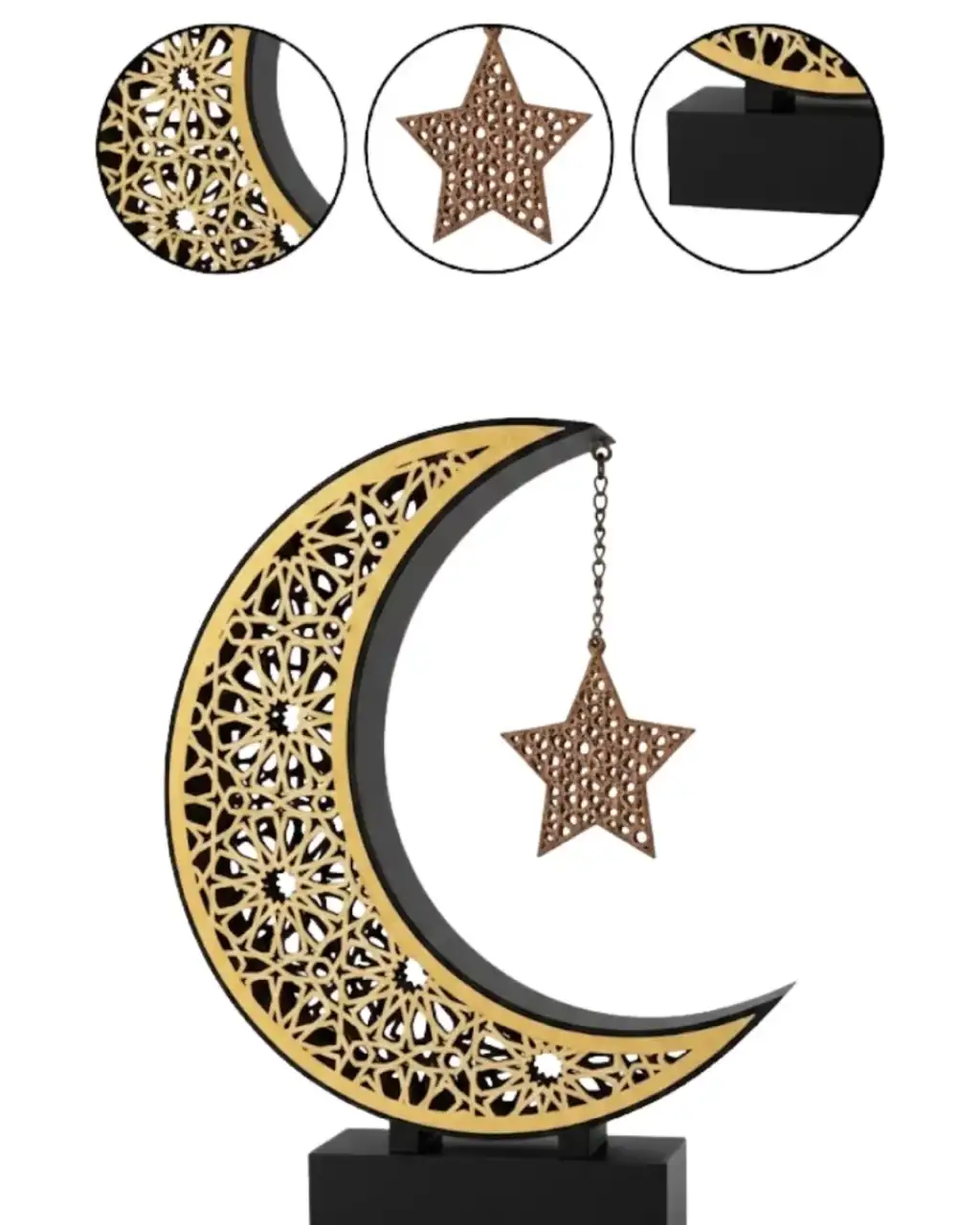 3D Hilal Yıldız Ramazan Dekoru 23x23 cm, anlamlı ve estetik bir dekoratif üründür.Masa üstü, raf ve konsol alanlarında rahatlıkla kullanılabilir.Zarif tasarımı sayesinde bulunduğu ortamda huzurlu ve şık bir ambiyans yaratır.