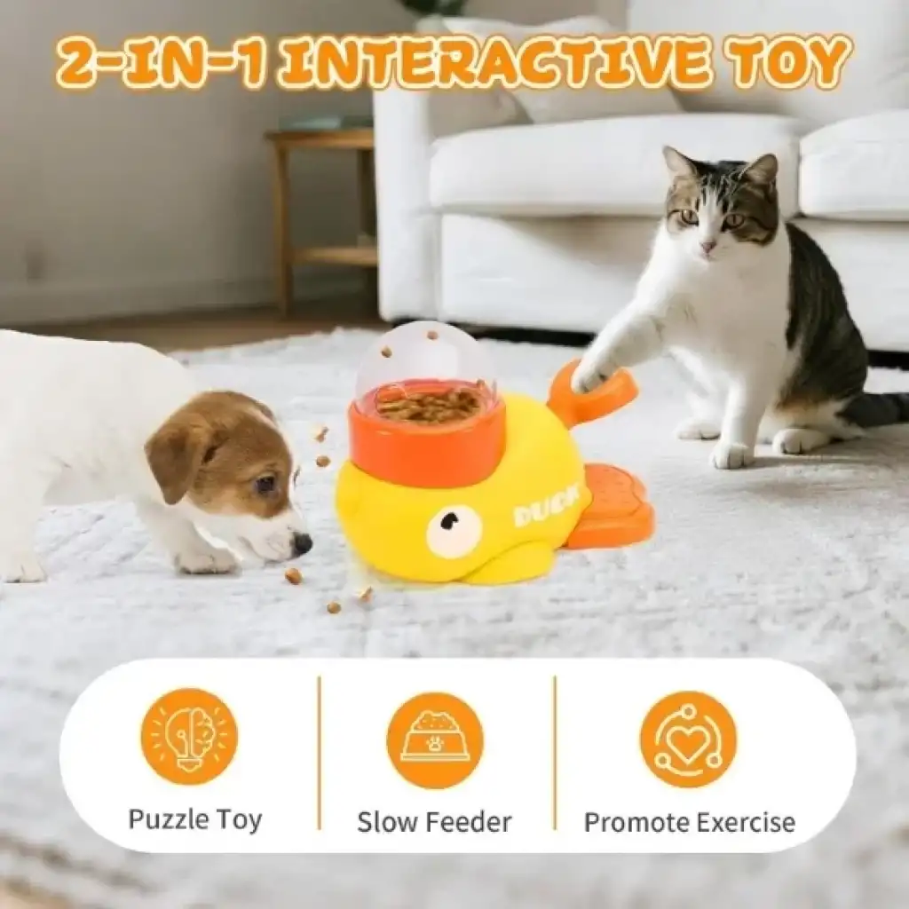 İNTERAKTİF EVCİL HAYVAN ÖDÜL MAMASI OYUNCAĞIÜrün Özellikleriİnteraktif evcil hayvan ödül maması oyuncağı, kedi ve köpeklerin zihinsel gelişimini desteklerken aynı zamanda eğlenceli bir oyun deneyimi sunar. Ödül maması haznesi, hayvanınızın oyuncağı hareket ettirmesiyle mamaların yavaş yavaş çıkmasını sağlar ve bu sayede hem eğlenir hem de yavaş beslenir. Dayanıklı, toksik madde içermeyen ABS plastik malzeme ile üretilmiştir. Kaymaz alt tabanı sayesinde yüzeyde sabit durur ve çevreye zarar vermez. Hem egzersiz hem zeka geliştirme amacıyla kullanılabilir. Ördek şeklindeki sevimli tasarımıyla dikkat çeker ve hayvan dostlarınızın ilgisini çeker. Kedi ve küçük ırk köpekler için uygundur, mama ödülleriyle oynarken aktif kalmalarına yardımcı olur.Paket İçeriği1 adet interaktif evcil hayvan ödül maması oyuncağı