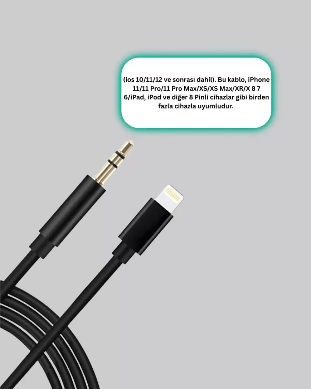 Lightning girişini 3.5 mm Aux bağlantısına dönüştüren bu kablo, iPhone 14 ve altı cihazların tamamıyla uyumludur ve Lightning girişli telefonlarda Aux ihtiyacını ortadan kaldırır. Modern cihazlarda kulaklık girişinin bulunmaması sebebiyle ortaya çıkan tüm ses aktarım problemlerini pratik biçimde çözer. Hem araç içinde hem evde hem de taşınabilir ses sistemlerinde kullanılabilecek çok yönlü bir ses adaptörüdür.1 metre uzunluğundaki kablo, kullanıcıya geniş bir hareket alanı sağlar. Telefonunuzu cebinizde, çantanızda veya masada rahatça tutarken bağlantıyı sürdürebilirsiniz. Tüm araba modellerindeki Aux girişleriyle çalışır ve temiz, net bir ses aktarımı sağlar. Ev hoparlörleri, kulaklıklar, ses mikserleri ve diğer Aux uyumlu tüm cihazlarla sorunsuz bağlantı kurar.Stereo ses aktarımı, bu kablonun en önemli özelliklerinden biridir. Ses kalitesindeki berraklık, kullanıcıya profesyonel bir deneyim sunar. Bass ve tizlerde bozulma yaşanmaz, müzikler daha dengeli ve güçlü şekilde duyulur. Film izlerken, oyun oynarken veya podcast dinlerken yüksek performans elde edilir.Kablo uçlarında kullanılan dayanıklı kaplama, uzun süreli kullanım için geliştirilmiştir. Sık takıp çıkarma, bükülme veya çekilme gibi durumlara karşı dirençlidir. Kablo yapısı hafif, esnek ve karışmayı önleyecek şekilde tasarlanmıştır.Tak-çalıştır özelliği sayesinde kurulum gerektirmez. Lightning ucunu telefona taktığınız anda 3.5 mm girişli tüm cihazlarla anında ses aktarımı sağlanır. Ses kontrolü telefondan yapılabilir ve yüksek stabiliteyle çalışır.Günlük kullanımda güvenilirlik, net ses kalitesi ve uzun ömür arayan kullanıcılar için ideal bir adaptördür. Hem araç içi hem ev hem iş ortamında rahatlıkla kullanılabilir. Bu kablo ile Lightning girişli cihazlarda Aux çıkışı ihtiyacı tamamen çözülür.