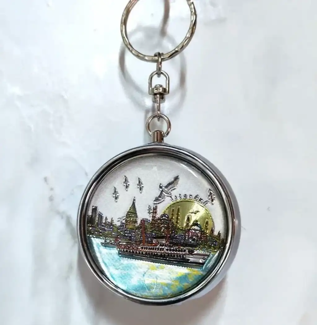 İSTANBUL TEMALI CEP KÜLLÜĞÜ ANAHTARLIKÜrün Özellikleriİstanbul Temalı Cep Küllüğü Anahtarlık 5x5 cm ölçüsü ile hem pratik hem de dekoratif bir kullanım sunar. Üzerinde yer alan İstanbul temalı görsel tasarım detayı sayesinde şehir konseptli şık bir aksesuar olarak dikkat çeker. Metal gövde yapısı ile dayanıklı bir form sunan bu cep küllüğü anahtarlık, taşınabilir boyutu sayesinde çanta veya anahtar üzerinde kolayca taşınabilir. Kapağı kapatıldığında iç kısmı güvenli şekilde muhafaza eder ve dışarıya temas etmesini önler. Hem günlük kullanım hem de hediyelik eşya alternatifi olarak tercih edilebilecek kullanışlı bir taşınabilir küllük modelidir.Ürün Teknik Özellikleri Özellik Açıklama Ürün Adı İstanbul Temalı Cep Küllüğü Anahtarlık Ölçü 5 x 5 cm Malzeme Metal gövde Tasarım İstanbul temalı baskı Kullanım Alanı Taşınabilir cep küllüğü ve anahtarlık Paket İçeriği1 adet İstanbul Temalı Cep Küllüğü Anahtarlık