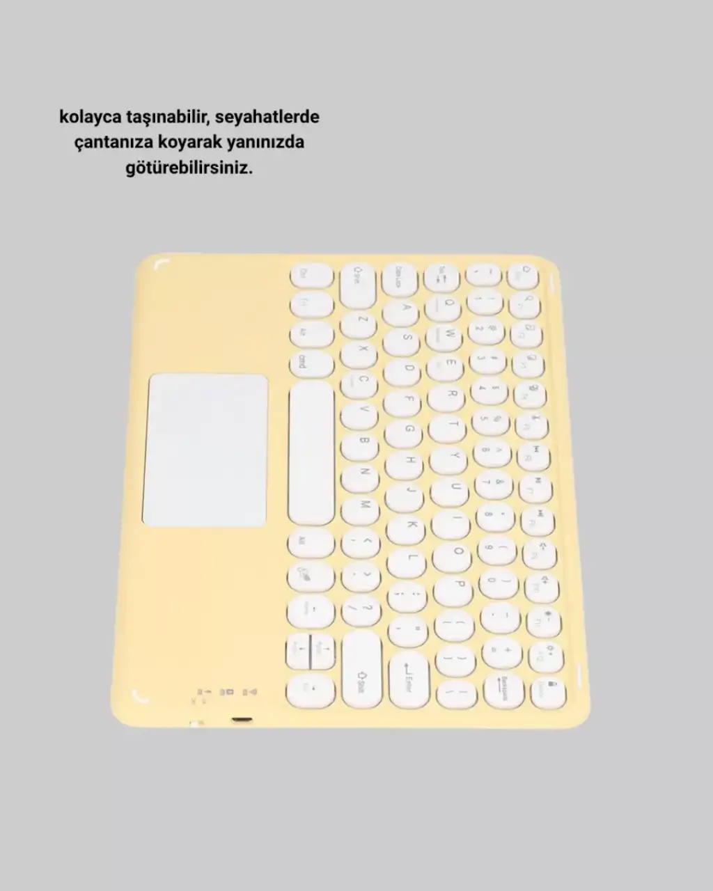 Teknolojinin hızla ilerlemesiyle birlikte artık tablet, telefon, laptop ve akıllı TV gibi cihazlar günlük hayatımızın vazgeçilmez birer parçası haline geldi. Bu cihazlarla daha verimli çalışmak için Kablosuz Bluetooth Klavye, pratikliği ve şıklığı bir araya getiriyor.Android, iOS ve Windows işletim sistemleriyle tam uyumlu olan bu klavye; tablet, cep telefonu, dizüstü bilgisayar, akıllı televizyon ve diğer Bluetooth destekli cihazlarla sorunsuz bir şekilde eşleşir.Kompakt ve Slim tasarımı, onu her yere rahatça taşımanıza olanak tanır. Seyahatlerde çantanıza kolayca sığar ve ofis, ev ya da okul ortamlarında pratik bir çalışma arkadaşı olur. Kablosuz bağlantı özelliği sayesinde kablo karmaşasına son verir ve özgür bir kullanım deneyimi sunar.Ergonomik tuş dizilimi, sessiz yazım özelliğiyle uzun süreli kullanımlarda bile rahatlık sağlar. Tuş hassasiyeti artırılmış yapısı, hızlı ve hatasız yazma deneyimi sunar. Enerji tasarruflu teknolojisi sayesinde uzun pil ömrüyle dikkat çeker.Modern minimalist tasarımı, dayanıklı tuş yapısı ve üstün bağlantı kararlılığı ile bu klavye, hem öğrenciler hem profesyoneller için mükemmel bir seçimdir.Kablosuz Bluetooth Klavye ile kablolardan kurtulun, verimliliğinizi artırın ve teknolojiyi özgürce deneyimleyin!