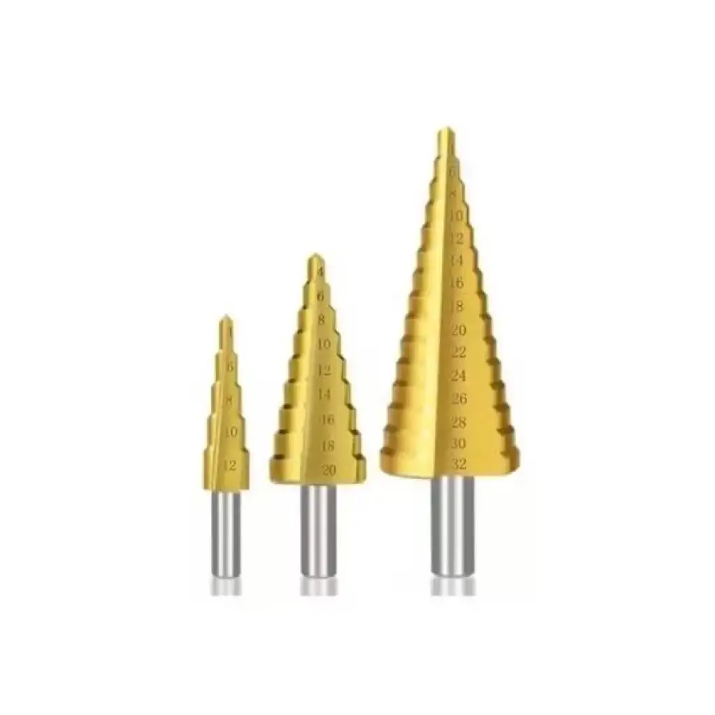 KADEMELİ MATKAP UCU SAC DELME PANÇ SETİÜrün Özellikleri3 Parça Yüksek Hız Çeliğinden mamul kademeli matkap uç seti.Çift yiv sistemi ile çatlamadan kesim.Küçük Delgi : 4, 6, 8, 10, 12 mmOrta Delgi : 4, 6, 8, 10, 12, 14, 16, 18, 20 mmBüyük Delgi : 4, 6, 8, 10, 12, 14, 16, 18, 20, 22, 24, 26, 28, 30, 32 mmNormal HSS uçlara oranla 6 kata oranla daha dayanıklı kalay kaplama.Paket İçeriği1 adet kademeli matkap ucu sac delme panç seti