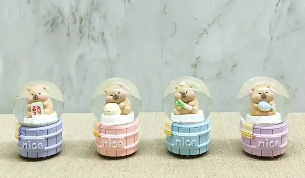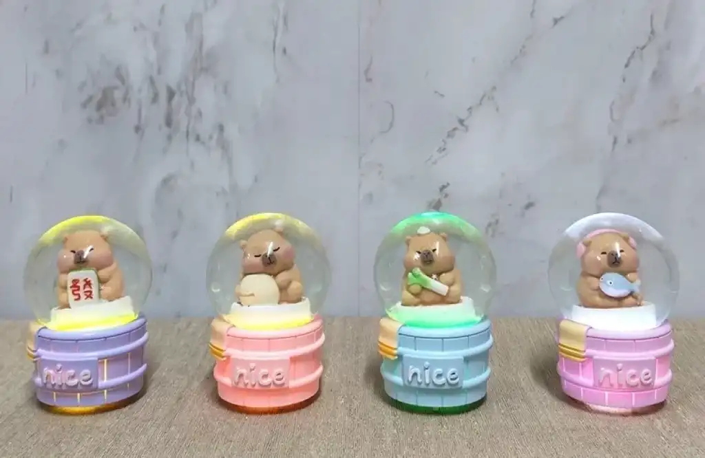 KAPİBARA TASARIMLI IŞIKLI KAR KÜRESİ Ürün ÖzellikleriKapibara tasarımlı ışıklı kar küresi, sevimli ve dekoratif görünümüyle hem çocukların hem de yetişkinlerin ilgisini çeken özel bir süs objesidir. 9x6,5 cm ölçülerindeki kompakt yapısı sayesinde masa üstü, raf, vitrin, komodin veya çalışma masası gibi birçok alanda rahatlıkla kullanılabilir. Küre içerisinde yer alan kapibara figürü, detaylı işçiliği ve pastel tonlardaki renkleriyle sıcak ve eğlenceli bir atmosfer oluşturur. Dahili ışık özelliği sayesinde kar küresi çalıştırıldığında iç kısmı yumuşak bir şekilde aydınlanır ve dekorasyona hoş bir ambiyans katar. Işıklı yapısı özellikle loş ortamlarda dikkat çekici bir görünüm sunar ve gece lambası tarzında dekoratif bir tamamlayıcı olarak da değerlendirilebilir. Kar küresi sallandığında içerisindeki sim ve kar efekti hareket ederek görsel şölen oluşturur. Dayanıklı malzemeden üretilmiş olup uzun süreli kullanım için uygundur. Renk seçimi yapılamaz, ürün görsellerde yer alan renklerden karışık olarak gönderilir. Doğum günü, yılbaşı, sevgililer günü veya özel günler için hediye alternatifi olarak da tercih edilebilir.Paket İçeriği1 adet Kapibara Tasarımlı Işıklı Kar Küresi
