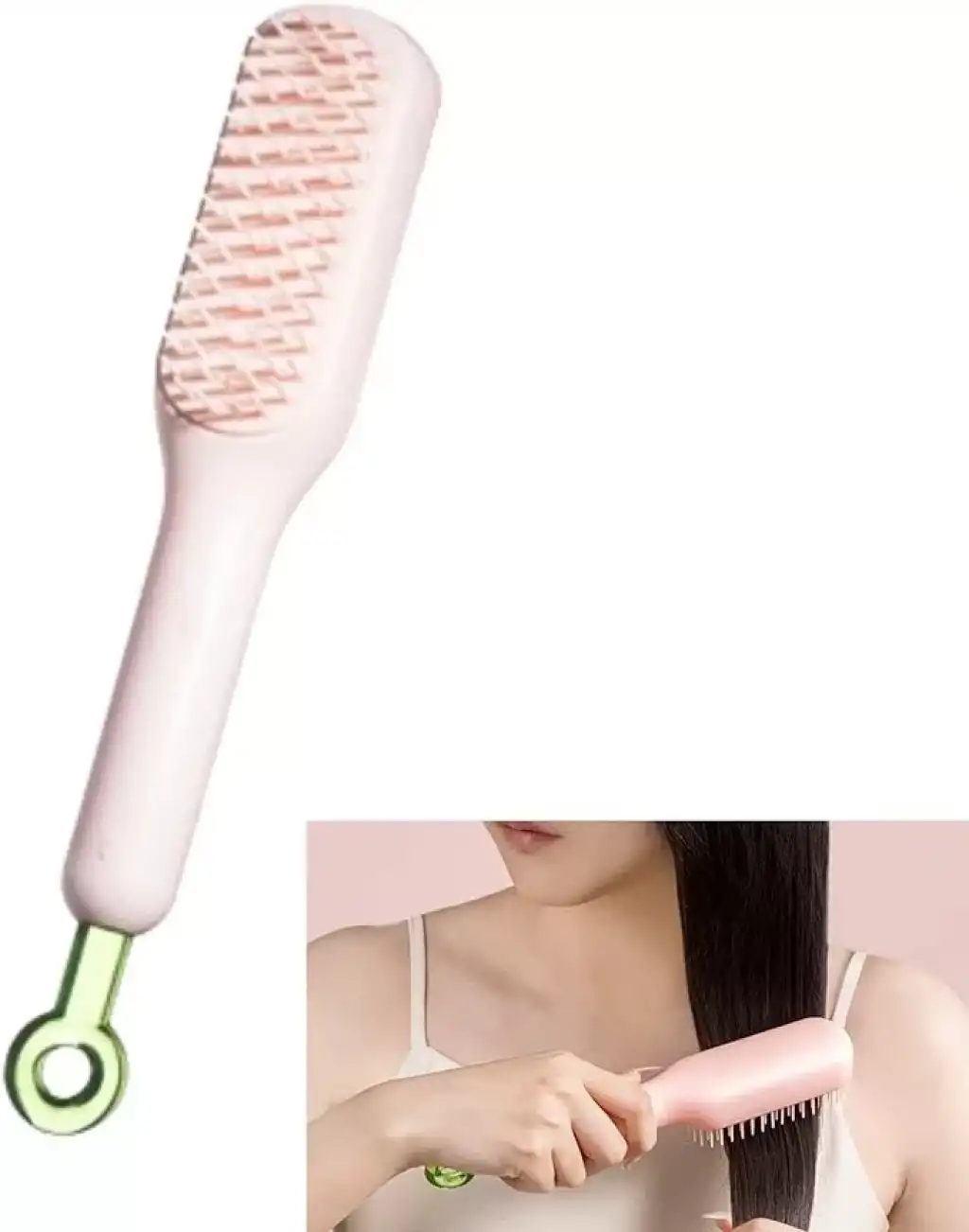 KENDİNİ TEMİZLEYEN SAÇ TARAĞI"Saçınıza Hak Ettiği Bakımı Verin - Her Tarakta Spa Hissi!"Kendi Kendini Temizleyen Anti-statik Masaj Tarağı:- Masaj Özelliği: Bu tarak, kafa derisine masaj yapabilen ve saçı nazikçe tedavi edebilen küçük yuvarlak parçacıklara sahiptir. Bu özellik sayesinde rahatlatıcı bir spa benzeri deneyim sunar.Ergonomik Tasarım:- Kullanım Kolaylığı: Basit ve şık bir görünüme sahip olan tarak, buzlu bir dokuya sahiptir ve ergonomik tutamağı ile rahat ve keyifli bir tarama deneyimi sağlar.Kullanımı Kolay:- Hızlı Temizlik: Geri çekilebilir döner kaldırma mekanizması sayesinde tarak, 1 saniyede saçları temizler. Sadece kolu döndürerek hava yastığının tüm saç ve döküntüleri serbest bırakmasını sağlayabilirsiniz. Bu özellik kepek ve kuru saç derisini tedavi ederek kafa derisi sağlığını ve saç büyümesini destekler.Tüm Saç Tipleri için Uygun:- Çok Yönlülük:Saça nazikçe nüfuz eder, en düğümlü düğümleri kolayca çözer ve tüm saç tiplerine uygundur. Düz saçlar, kıvırcık saçlar, ince saçlar, kalın saçlar, zarar görmüş saçlar, peruk ve uzatılmış saçlar için ideal bir taraktır.Kullanım Alanları- Günlük Kullanım: Her türlü saç tipi ve ihtiyacı için günlük kullanıma uygun.- Saç Bakımı ve Şekillendirme: Hem saç bakımında hem de saç şekillendirmede rahatlıkla kullanılabilir.- Masaj ve Rahatlama:Kafa derisine masaj yaparak rahatlama ve konfor sağlar.Paket İçeriği1 adet kendini temizleyen saç tarağı