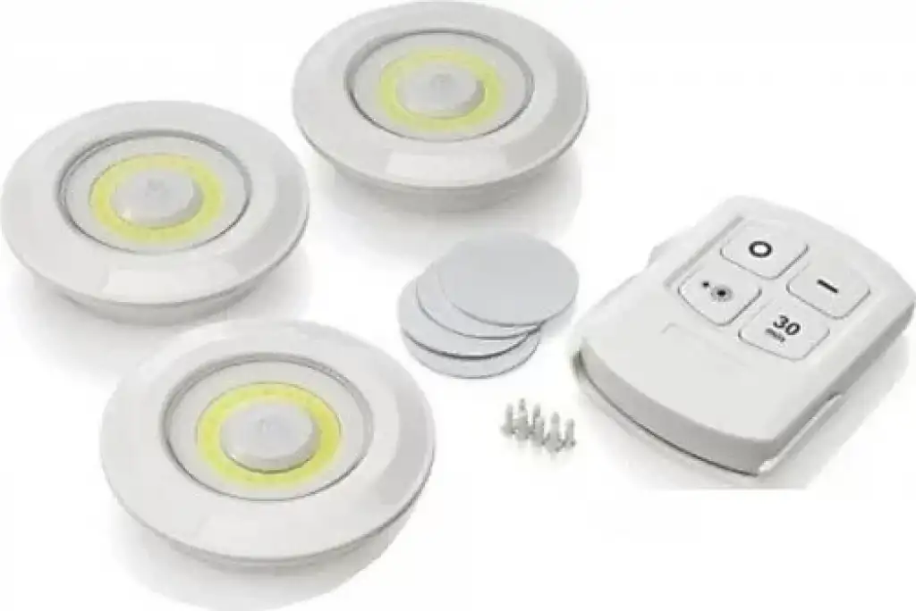 KUMANDALI LAMBA SETİ 3 ADETİster salonunuzda,ister banyonuzda,ister mutfağınızda ister oturma odanızda istersenizde kampdaBasit ve Pratik kurulumu ile hiç bir tesisat bağlantısı gerektirmeden kolay kullanım !Uzaktan kumandası ile yerinizden kıpırdamadan kontrol etme imkanı tanır.İki kademe ışık ayarı ve 30 dk zaman ayarlıyıcı mevcuttur.İsterseniz kumandasız spotun ortasına basarakta çalıştırma imkanı sağlamaktadır.3+AAA pille çalışmaktadır.Hiç bir tesisat bağlantısı gerektirmez.Çift taraflı bant ile istediğiniz her yere kolayca montajını sağlar, pil değişimi sırasında arka kapağı çevirip açarak sağlayabilirsiniz.Paket İçeriği 3 Adet Spot LambaKontrol KumandasıTeknik AçıklamaBoyutlar: 9 cm-2 cm Kumanda 8 cm 6 cm 2 cmIşık Özelliği: 3 Adet Ultra SMD Power LedIşık Rengi: Beyaz ( Gün Işığı )Çalışma Süresi: 15 Saat / 30 Dakika AyarlanabilirGövde Malzemesi: Sert PlastikKullanım Özellikleri: Yapışkanı İle Sabitlenir ve Masa Üstü Kullanım ÖzelliğiTeknik Özellikleri: Her Ürün 3 Adet AAA Pil ile AydınlatmaKutu İçeriği : Ürün Ve Duvara Sabitleme Yapışkanı KumandasıAmpül Ömrü: 100.000 SaattirKullanım Yeri: Av, Kamp, Ev, Okul, Araba, Otel, Restorantlar
