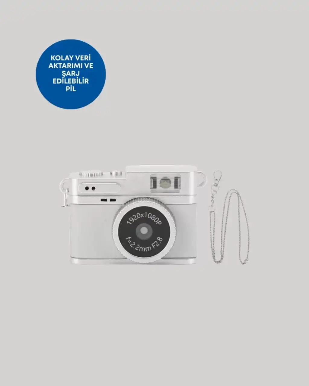 Retro mini kamera, taşınabilirliği ve teknolojik özellikleriyle günlük kullanım için ideal bir modeldir. Hafif gövdesi, kordonu ve metal tokası sayesinde güvenle taşınabilir. Ani anları kaydetmek, seyahat, okul etkinlikleri veya sosyal medya içerikleri için mükemmeldir.1080p Full HD videolar, net ve akıcı görüntüler elde etmenizi sağlar. 2MP fotoğraf çözünürlüğü günlük kullanım için idealdir. Cihazın sunduğu 4 filtre, içeriklere hızlıca estetik bir dokunuş katabilir.128GB dahili hafıza, geniş depolama kapasitesiyle dikkat çeker. OTG desteği ile Android cihazlara hızlı aktarım sağlar, bilgisayara ihtiyaç duymadan çekimlerinizi paylaşabilirsiniz. Yerleşik LED ışık, düşük ışıkta daha net çekimler yapmanızı sağlar.0.96 inç ekran, görüntülerin hızlı şekilde kontrol edilmesine olanak tanır. Kompakt tasarımı sayesinde cebinizde, çantanızda veya anahtarlığınızda her zaman taşıyabilirsiniz.