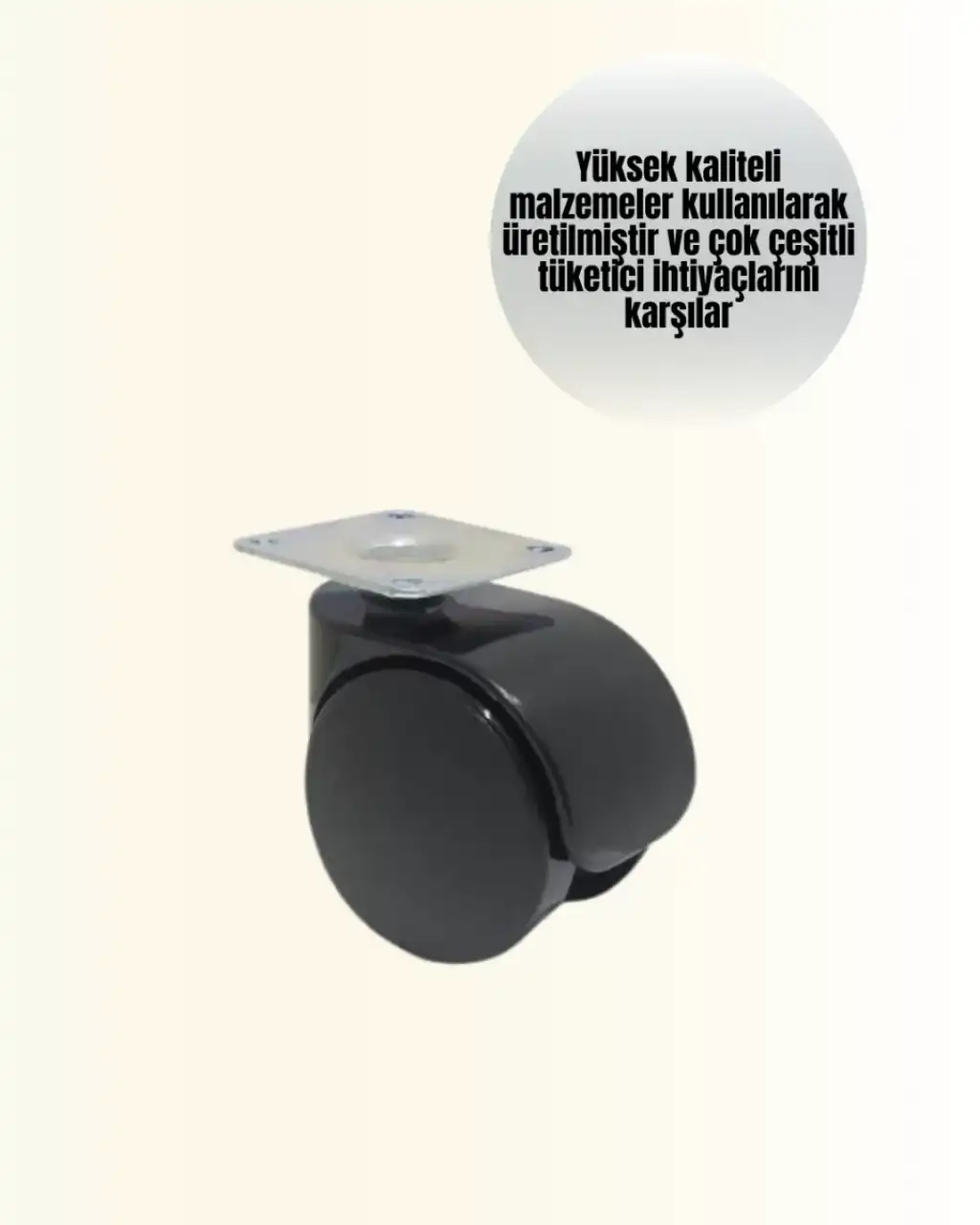 4 adetlik kilitsiz mobilya tekerleği seti, mobilyalarınıza hareket özgürlüğü kazandırır. Dayanıklı yapısı sayesinde uzun ömürlüdür ve günlük kullanıma uygundur.Halı ve beton gibi farklı zeminlerde sorunsuz çalışır. Ofis ve ev ortamlarında çok amaçlı kullanım için tasarlanmıştır. 6 cm ölçüsü ile denge ve kolay hareket imkanı sunar.