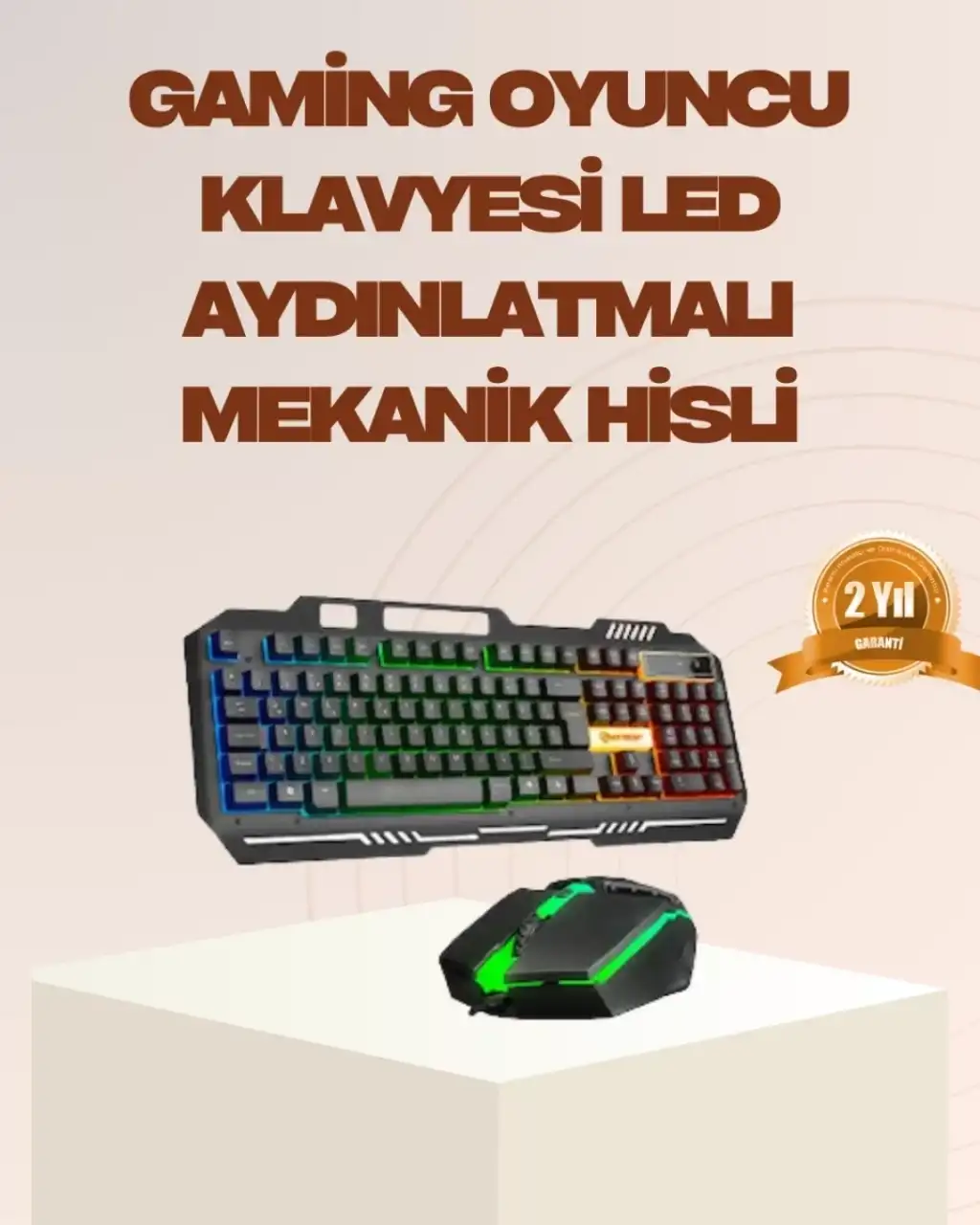 PG8018 LED ışıklı mekanik oyuncu klavye ve mouse seti, oyun performansını üst seviyeye taşımak isteyen oyuncular için tasarlanmış güçlü bir donanımdır. Mekanik switch tuş yapısı, hızlı tepki süresi ve uzun ömürlü kullanım sunarak, oyunlarda rakiplerinizden bir adım önde olmanızı sağlar. 19 tuş kombinasyonuna kadar çatışmasız kullanım sayesinde aksiyonun en yoğun anlarında bile komutlarınız eksiksiz algılanır.FN tuşuyla aktif hale gelen çoklu kısayollar, oyun sırasında seri hamleler yapmanızı sağlar. Büyük enter tuşu ve sık kullanılan tuşların geniş formda tasarlanması, kullanım kolaylığı sağlarken yazı yazarken bile üst düzey bir konfor sunar. Klavye, özellikle FPS, MOBA gibi rekabetçi oyunlar için optimize edilmiştir.Setin ergonomik mouse’u, ele tam oturacak şekilde tasarlanmış olup uzun süreli kullanımda el ve bilek yorgunluğunu azaltır. Hassas optik sensörle donatılan mouse, akıcı ve kararlı hareketler sağlar. Bu da, özellikle hızlı tepki gereken sahnelerde büyük avantaj sunar.RGB LED aydınlatma sistemi ile klavye sadece estetik görünmekle kalmaz, karanlık ortamlarda da net görüş sağlar. Renkli nefes alma modu ve ışık geçişleri, göz yormadan etkileyici bir atmosfer oluşturur. Windows 2000, XP, Vista, 7 (32-bit ve 64-bit) işletim sistemleri ile tam uyumludur.Oyun dünyasında stil ve kontrolü bir arada arayanlar için PG8018 doğru tercih. Hem performans hem görsellik isteyen oyuncular için tasarlandı.