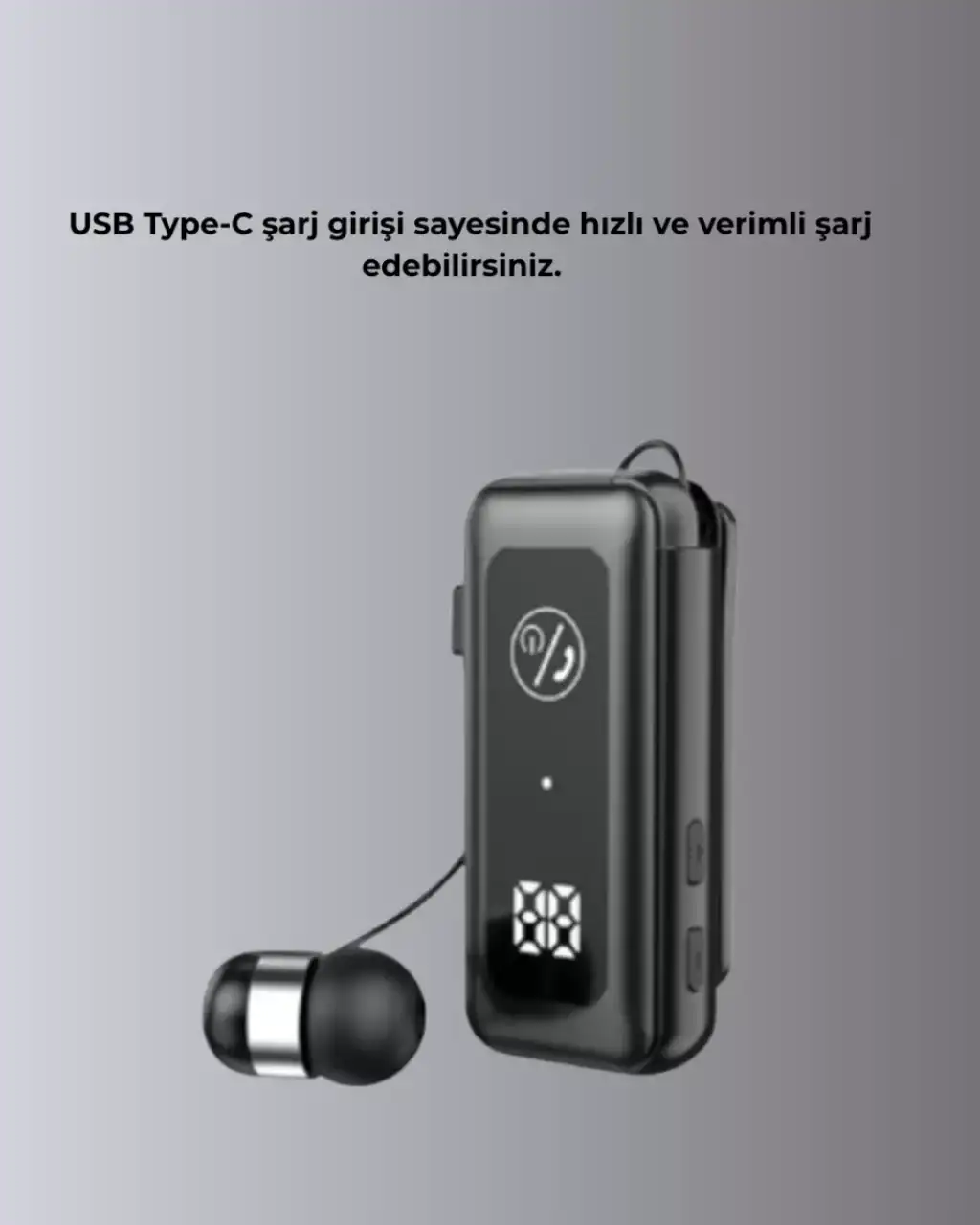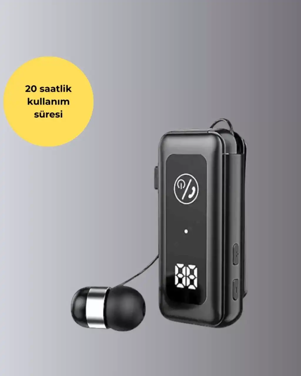 Bu Bluetooth 5.2 kulaklık, teknolojik özellikleri stil sahibi bir şekille sunar. Dijital ekran, titreşimli bildirim, hafıza kartı ve makara mekanizması şıklığı işlevsellikle buluşturur. Aynı anda iki cihaza bağlanabilme ve otomatik geçiş özellikleri sayesinde çok yönlü kullanım sağlar.20 saatlik pil performansı ve hızlı şarj desteğiyle uzun süre mobil özgürlük sunar. Garnitür tarzındaki kablo yapısı makara sistemiyle birleşerek sade ve estetik bir görünüm oluşturur. Yaka klipsi, ortam içinde güvenli kullanım sağlar. Gürültü engelleme, HD ses kalitesi ve fonksiyon tuşlarıyla multimedya deneyiminizi kontrol altında tutmanızı sağlar.Modern kullanıcı profilleri için hem şık hem fonksiyonel bu kulaklık, güvenilir bağlantı, yüksek ses kalitesi ve kompakt yapısıyla öne çıkar.