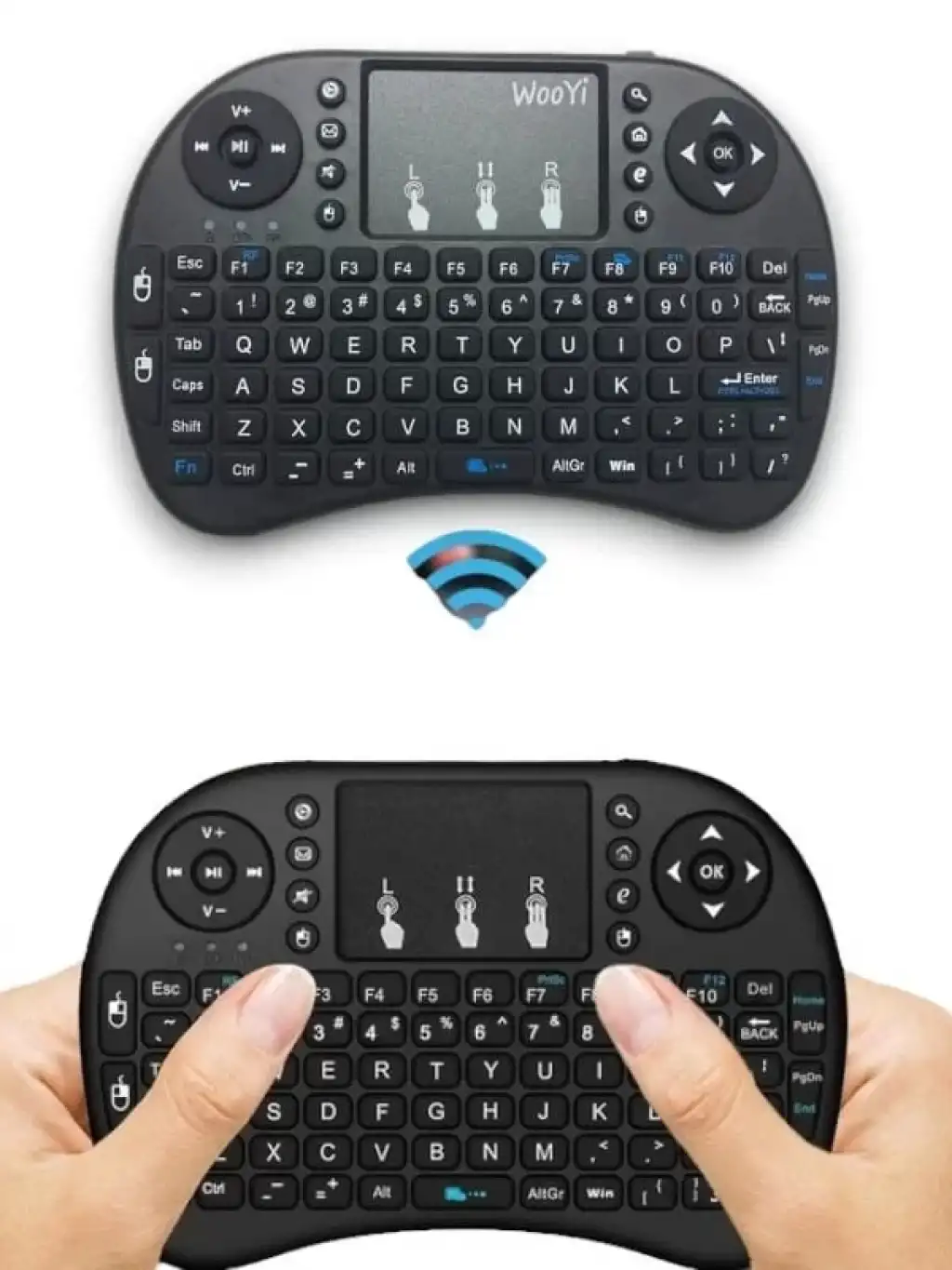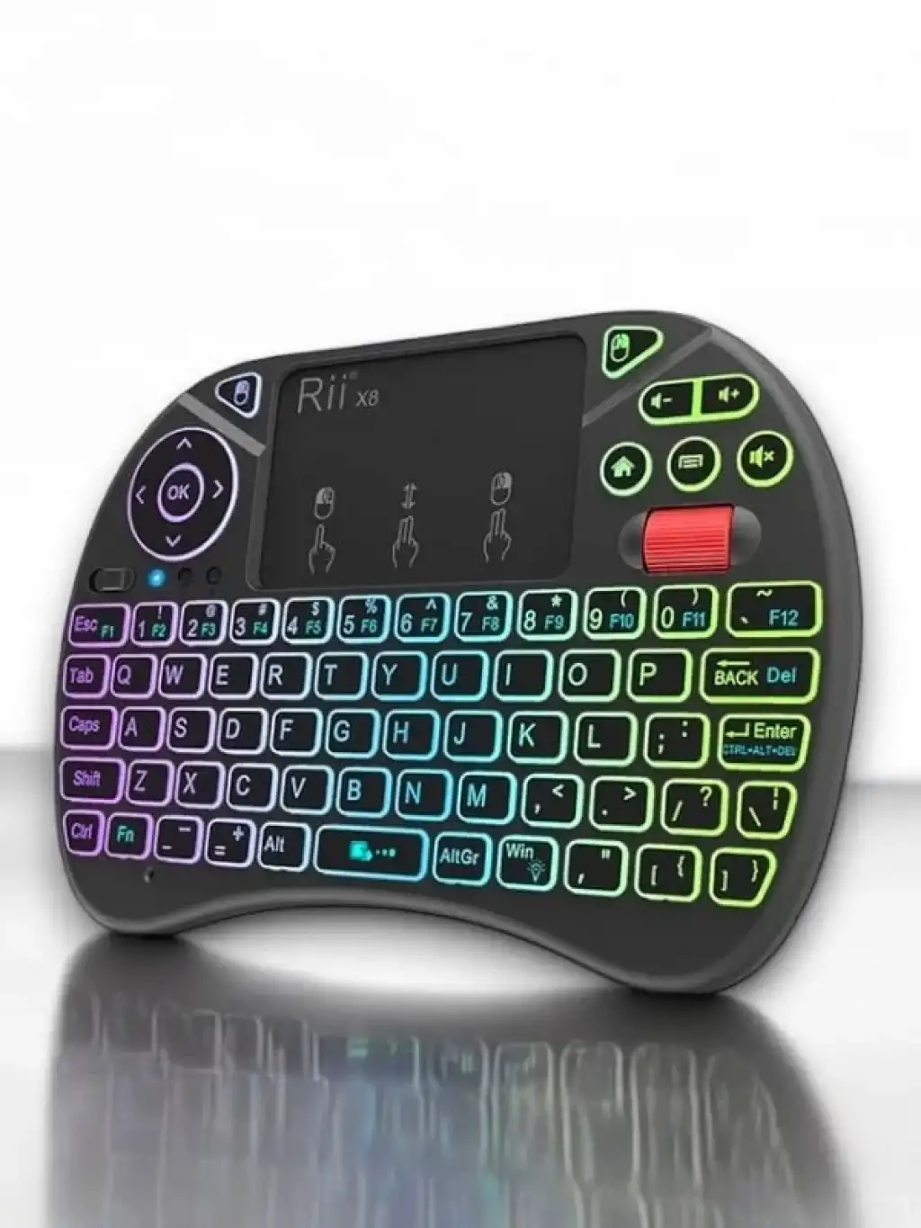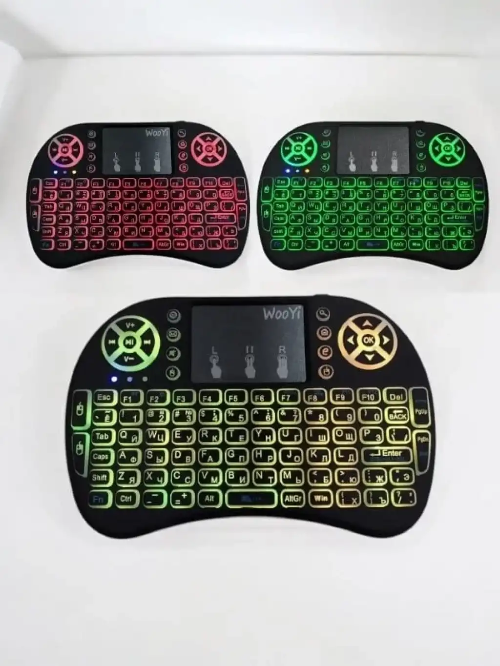 Mini Klavye Işıklı Kablosuz Mini Klavye SmartTV Televizyon PS3 Dokunmatik Mouse Mini Kablosuz Dokunmatik Klavye Mouse 3 Renk olarak klavye ışıklıdır. Işığını açmak için FN + F2 tuşuna basarak renkler arasında geçiş yapabilirsiniz. Bilgisayarınıza, akıllı telefonunuza, tabletinize, televizyonunuza bağlanır. Ufacık boyutu ile yanınızda her yere taşıyabilirsiniz. Kullanımı kolaydır, kaliteli plastikten üretilmiştir. Sadece siyah mevcuttur. 2.4 GHz kablosuz bağlantı ile 10 metreye kadar kullanılabilir. Ürün Pillidir Dahili bataryası içinde mevcuttur. Windows, Android, Mac, Linux destekler PS3, XBOX360 destekler Özellikleri Voltaj: 3.3 V Çalışma akımı: 50mA Frekans: 2.4 GHz Kullanım mesafesi: 10 metreye kadar Ağırlık: 92gr (pilsiz) Boyutları: 14.7x9.8x2cm Kutu İçeriği 1 adet mini klavye 1 adet kullanım klavuzu 1 adet USB verici (klavyenin pil girişinin içindedir.)Kutu İçeriği 1 adet mini klavye 1 adet kullanım klavuzu 1 adet USB verici (klavyenin pil girişinin içindedir.)