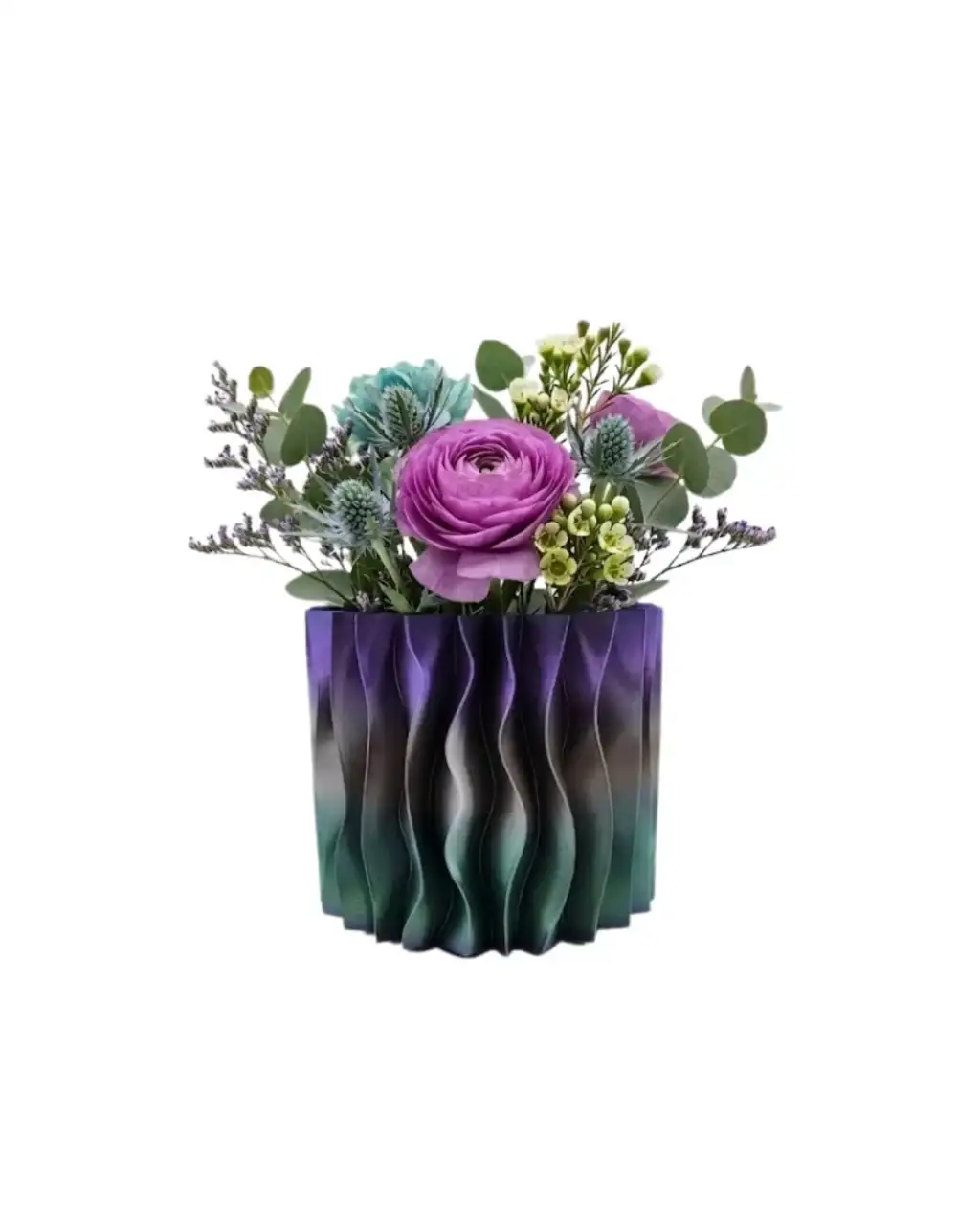 Modern dalgalı tasarımlı mor 3D dekoratif vazo, estetik görünümü ve özgün formu ile yaşam alanlarında dikkat çeken dekoratif ürünlerden biridir. Dalga formunda tasarlanmış yüzey yapısı sayesinde klasik vazolardan farklı bir görünüm sunar ve bulunduğu ortama modern bir karakter kazandırır. Mor renk tonları ile birleşen bu tasarım hem zarif hem de sanatsal bir dekoratif obje olarak kullanılabilir.3D baskı teknolojisi kullanılarak üretilen bu dekoratif vazo, yüzeyindeki dalgalı form sayesinde ışık ile farklı açılarda farklı gölgeler oluşturarak görsel bir derinlik hissi yaratır. Bu sayede ürün bulunduğu ortamda yalnızca bir vazo değil aynı zamanda dekoratif bir sanat objesi olarak da dikkat çeker. Modern dekorasyon anlayışını yansıtan bu tasarım minimalist ve estetik dekorasyon konseptleri ile uyumlu bir kullanım sunar.Mor renk dekorasyon dünyasında zarafet ve estetik ile ilişkilendirilen renklerden biridir. Bu nedenle mor dekoratif vazo özellikle modern ev dekorasyonlarında, minimalist dekorasyon stillerinde ve sanatsal dekorasyon konseptlerinde oldukça şık bir tamamlayıcı aksesuar olarak kullanılabilir.Dekoratif mor 3D vazo özellikle kuru çiçekler, dekoratif dallar veya minimal bitki düzenlemeleri için oldukça uygun bir kullanım sunar. Bunun dışında masa dekoru, raf dekoru veya sehpa üzerinde dekoratif obje olarak da kullanılabilir. Çok yönlü kullanım özelliği sayesinde hem ev dekorasyonunda hem de ofis dekorasyonunda tercih edilebilir.Salon, çalışma odası, kitaplık veya ofis masası üzerinde kullanıldığında bulunduğu ortama estetik bir atmosfer kazandırır. Modern dekorasyon, minimalist dekorasyon ve sanatsal dekorasyon stilleri ile uyum sağlayabilecek bir tasarıma sahiptir.Modern dalgalı tasarımlı mor 3D dekoratif vazo aynı zamanda dekoratif hediye alternatifi olarak da tercih edilebilir. Ev hediyesi, yeni ev hediyesi veya doğum günü hediyesi olarak oldukça şık bir seçenektir.Estetik tasarımı ve modern görünümü sayesinde bu dekoratif vazo yaşam alanlarında dikkat çeken şık bir dekoratif aksesuardır.