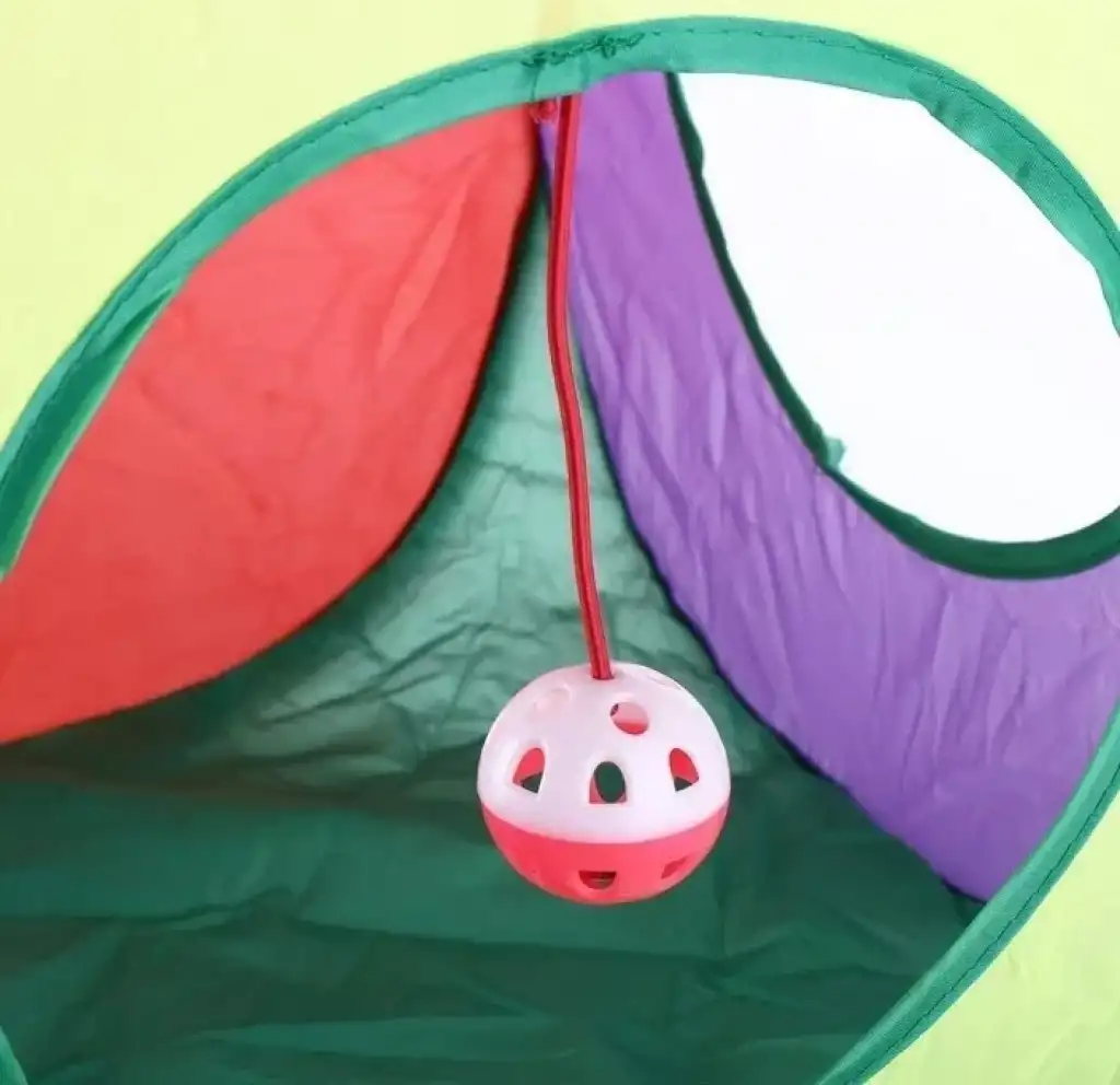 Oyuncak Toplu Kedi Oyun TüneliÜrün Açıklaması:Kediniz için özel olarak tasarlanmış bu renkli oyun çadırı, hem oyun hem de saklanma alanı sunar. İçinde bulunan asılı oyuncak top ile kedinizin ilgisini çeker, onu eğlenceli vakit geçirmeye teşvik eder. Dayanıklı kumaş yapısı ve renkli tasarımıyla evinizde şık bir kedi aksesuarıdır. Kurulumu ve saklaması kolay olan bu çadır, kedinizin günlük enerjisini atmasına yardımcı olur.Boyutlar: Geniş oyun alanıMalzeme: Dayanıklı ve güvenli kumaşÖzellikler: Renkli tasarım, asılı oyuncak top, kolay kurulum