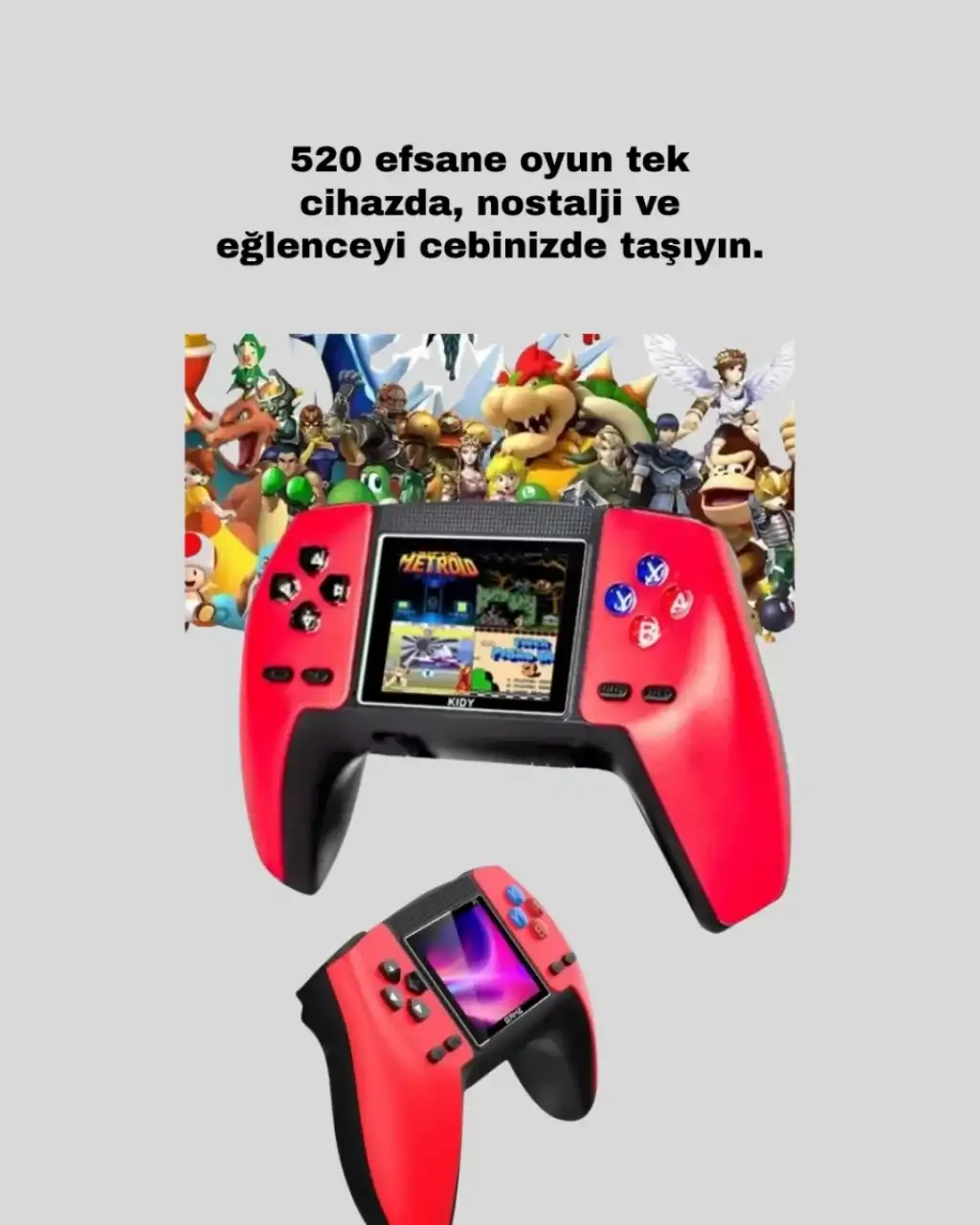 P5 Retro GamePad, 520 oyun kapasitesiyle hem nostaljik hem de pratik bir eğlence deneyimi sunar. Ergonomik tasarımı uzun süreli kullanımda rahatlık sağlar. Hafif yapısı sayesinde kolayca taşınabilir. Şarj edilebilir batarya ile kesintisiz saatlerce oyun oynayabilirsiniz. AV çıkış özelliği sayesinde televizyona bağlanarak büyük ekranda keyifli vakit geçirebilirsiniz. Basit kurulum ve kullanıcı dostu kontrolleri ile her yaştan oyuncuya uygundur.